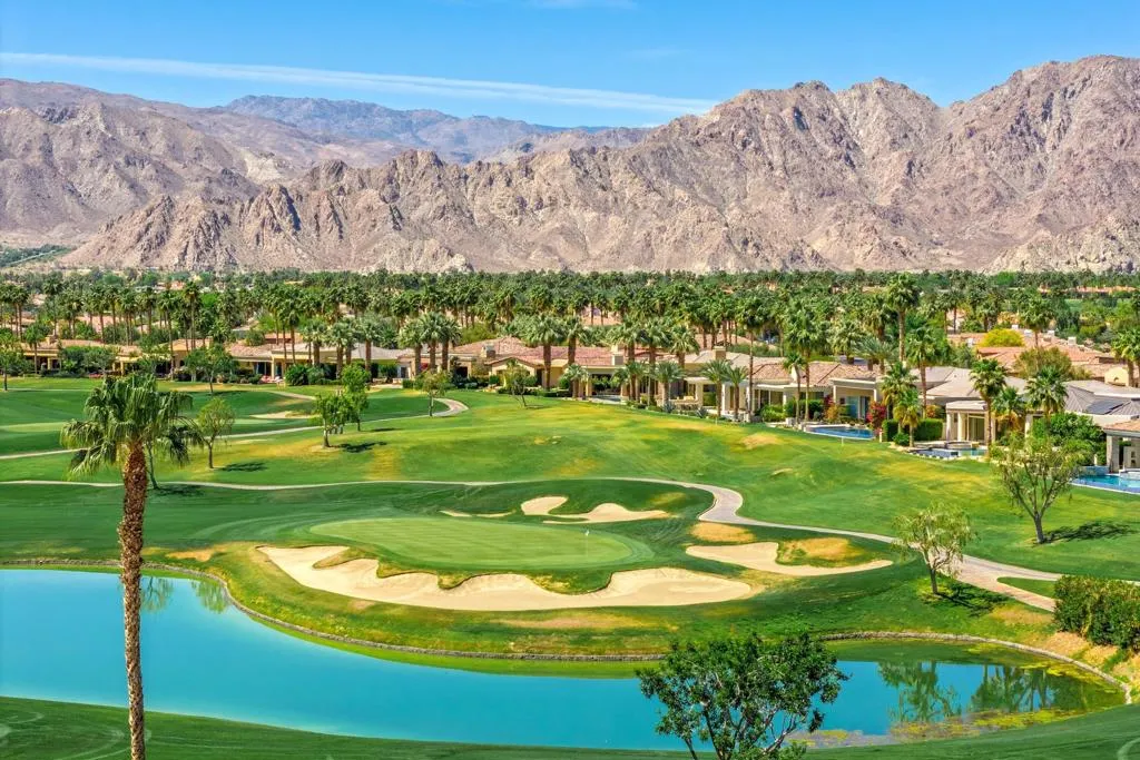 Located on one of the most sought-after streets in PGA West, this exceptional Summit home is perfectly positioned on the private Tom Weiskopf course, capturing some of the most iconic views in the entire community. The property overlooks the famed Bermuda Triangle, spanning holes 10, 11, and 12, and showcases a rare combination of three fairways, lake views, and breathtaking southwestern mountain vistas. This is one of the most desirable view corridors in PGA West, offering depth, sunshine, and a true resort-style setting. Well constructed with a highly functional floor plan, the home is designed for both comfortable living and effortless entertaining. The layout includes a private casita, ideal for guests, along with spacious living areas that seamlessly connect to the outdoors. The kitchen is equipped with premium Viking appliances and opens to the main living space, enhancing the indoor-outdoor flow that PGA West buyers are looking for. The backyard is built for desert living, featuring an oversized pool and spa, built-in BBQ, and expansive patio space positioned to fully capture the golf course, lake, and mountain views. A gated courtyard entry with a tranquil water feature creates a welcoming and private entrance. Offered turnkey furnished, including a golf cart, this property allows for immediate enjoyment. The home has also been pre-inspected with a report available, providing added transparency and confidence. Opportunities with this level of view, location, and setting on the Weiskopf private course are hard to find.