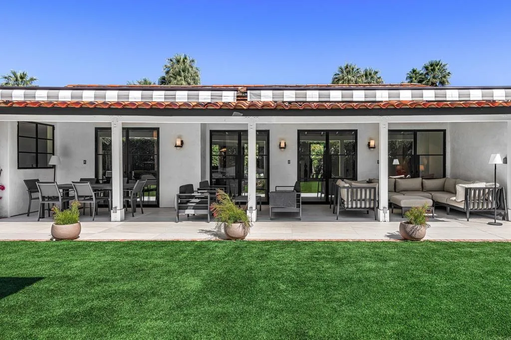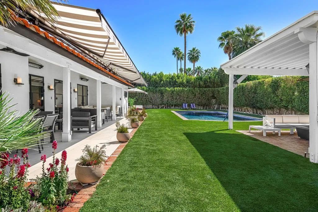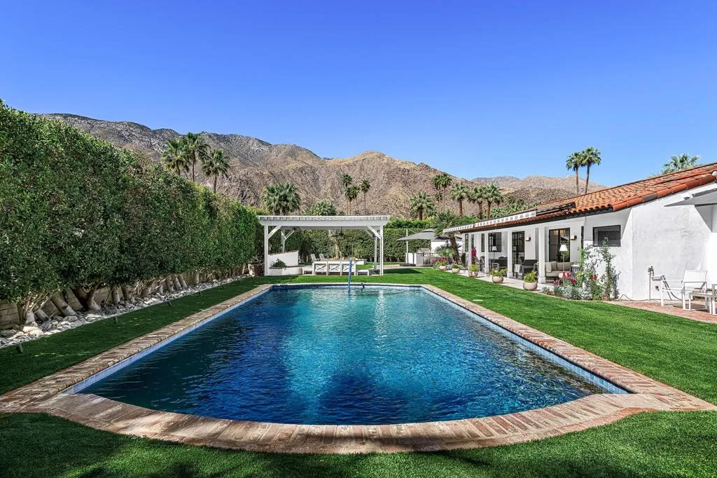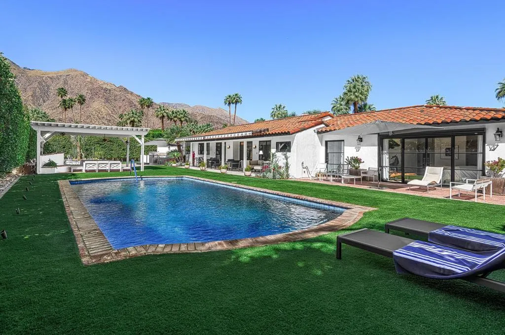 Welcome to this enchanting, fully reimagined residence tucked behind walls and lush hedges in prestigious Old Las Palmas. Originally built in 1946, this classic ranch was taken to the studs and transformed into a striking modern contemporary, thoughtfully designed for seamless indoor-outdoor living and effortless entertaining, completed in 2025.Enter through the pedestrian gate into a private, garden, where newly curated landscaping, vibrant florals, and premium artificial turf create a true sense of arrival. Inside, the transformation unfolds into a stunning great room with an open-concept design, flooded with natural light and anchored by a statement fireplace that brings warmth and ambiance to the space.The home offers three well-appointed bedroom suites, plus a versatile fourth bedroom currently used as an office/media room. A third bath functions as a powder room while also providing a shower connection to the fourth bedroom.At the heart of the home, the chef's kitchen is a masterpiece of both form and function, sleek, seamless, and thoughtfully concealed. Custom flush cabinetry and shuttered elements reveal hidden features including a dry bar, ice maker, and integrated storage for dishware, glassware, and small appliances. An eating bar, breakfast nook, and dining area all overlook the resort-style backyard, creating a natural flow for everyday living and entertaining.Multiple doors open to create a true indoor-outdoor experience, extending the living space into a beautifully designed outdoor retreat. Enjoy the expansive entertaining area complete with an outdoor kitchen, fire pit lounge, and an automatic shade structure that stretches across the yard for added comfort.The west-side bedroom suite offers privacy for guests or flexible use, while the primary suite, positioned on the east end of the home, is a tranquil retreat accessed through double doors. Designed for comfort and relaxation, it features its own A/C, automatic shades and drapes, and ceiling fan. The spa-inspired primary bath includes a walk-in shower, Toto toilet, dual vanities, and a convenient stacked laundry.An additional guest suite overlooks the pool and garden, with the office/media room just across the hall, offering flexibility for modern living.Additional highlights include a two-car garage with epoxy floors and enhanced ceiling insulation, plus additional side parking. The property sits in a prime interior location with southern exposure and beautiful mountain views.