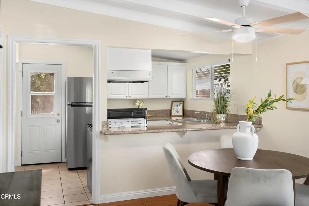 Homeownership awaits with this refreshed single-family residence designed to make a lasting impression. Offering 3 bedrooms, 1 bathroom, and a large backyard, this home is the perfect blend of charm, comfort, and opportunity for first-time buyers or anyone looking for move-in ready living. From the moment you arrive, the gated driveway and inviting front facade, highlighted by elegant arches along the porch, set a warm and welcoming tone. A brand-new front door and fresh interior and exterior paint using quality Dunn-Edwards finishes add to the home's crisp, modern appeal. Inside, the living room showcases stylish wood laminate flooring paired with eye-catching wood beamed style ceilings, creating a space that feels both cozy and distinctive. The open concept kitchen seamlessly connects to the dining and living areas, making it ideal for gatherings. Enjoy cooking in the upgraded kitchen featuring new granite countertops, sink and disposal, and new appliances including a range, range hood, and dishwasher. Convenient indoor laundry hookups are located just off the kitchen for added functionality. Down the hall, you'll find three generously sized bedrooms, each featuring matching wood beamed style ceilings and laminate flooring. The updated bathroom is bright and attractive, complete with a new vanity, new toilet, and a shower/tub combination with sleek glass doors. The outdoor space offers even more to love, with a spacious backyard that includes two separate patio areas, perfect for relaxing or entertaining, and a newly installed rear fence. Fruit trees in both the front and back yards add a special touch of homegrown enjoyment, while the ample lot provides room to possibly expand or simply enjoy the outdoors. Adding to the home's versatility, the garage has been converted into a bonus room (not included in the square footage), offering endless possibilities, whether you envision a game room, home office, gym, or creative space. Ideally situated near shopping, dining, the Industry Hills Golf Club at Pacific Palms Resort, and with convenient freeway access, this home delivers both lifestyle and accessibility. Don't miss your chance to make it yours.