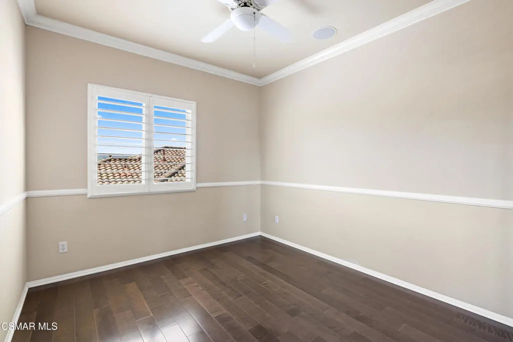 Welcome to this beautifully maintained 3-bedroom, 2.5-bath townhome offering 1,836 square feet of light-filled living space in the highly desirable community of Dos Vientos. You are welcomed by a spacious front patio, perfect for enjoying the mountain views.The home offers an inviting, open layout. The main living area is bright and airy, featuring large windows, wood plantation shutters, surround sound capability, and a seamless flow into the dining area and kitchen, ideal for both everyday living and entertaining. The kitchen features stainless steel appliances and ample cabinetry, with a private balcony just off the kitchen providing an additional outdoor retreat with peaceful neighborhood views.Upstairs, all bedrooms showcase rich maple hardwood flooring and mountain views. The generously sized primary suite includes a walk-in closet, secondary closet, dual sink vanity, soaking tub, and separate shower.Additional highlights include a direct-access attached 2.5-car garage. Ceiling speakers are installed throughout, ready for your custom sound system. Wood plantation shutters and maple hardwood flooring add warmth and style throughout.Enjoy resort-style amenities including two pools, a spa, and a clubhouse. Ideally located near parks, shopping, and top-rated Sycamore Canyon School (K-8), this home offers the perfect blend of comfort, convenience, and Dos Vientos living.