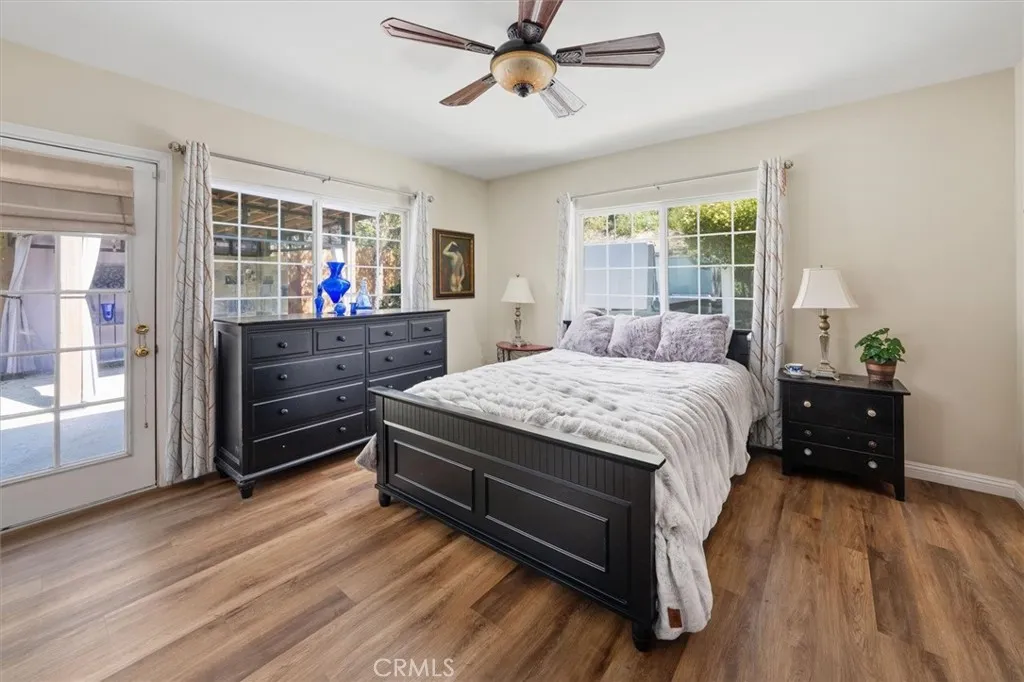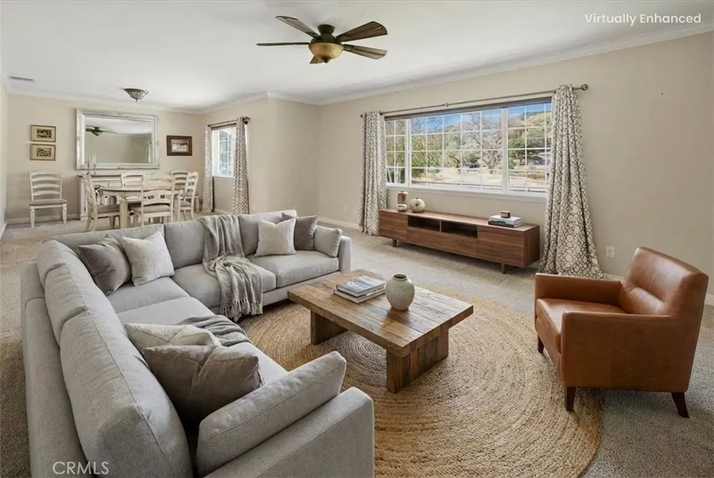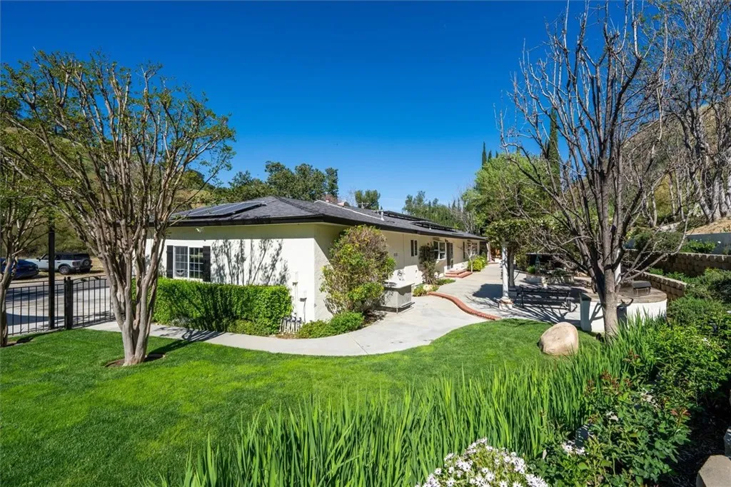 Stunning Fully Remodeled Single-Story Ranch Home on Nearly One Acre of Horse Property! Welcome to this beautifully updated mini-ranch offering the perfect blend of modern comfort and country charm. Situated on over an acre, this exceptional single-story home features 3 bedrooms and 3 bathrooms, thoughtfully designed for both everyday living and entertaining. Step inside to a spacious living and dining area filled with natural light, and newer windows throughout. The upgraded kitchen is a chef’s dream, showcasing elegant Taj Mahal quartzite countertops, convenient cabinet slide-outs, and stylish finishes. The primary suite offers direct access to the backyard, creating a private retreat where you can unwind in the impressive 16-foot Cal Swim Spa or refresh in the outdoor shower. All bathrooms have been tastefully updated and include built-in heaters for added comfort. Energy efficiency is a standout feature with 32 owned solar panels producing approximately 10,000 kW. Additional upgrades include a newer AC system and instant water heater. The expansive backyard is an entertainer’s paradise, complete with a tranquil water feature, two pergolas, and a built-in BBQ area featuring a sink and refrigerator. Outdoor enthusiasts will appreciate the mini horse corral and abundant parking space for RVs, boats, and recreational vehicles. Enjoy a variety of fruit trees including lemon, orange, tangerine, apricot, apple, and olive. The home also includes a refrigerator, large laundry room, and an oversized garage for added convenience. This one-of-a-kind property offers space, upgrades, and lifestyle—don’t miss your opportunity to call it home!