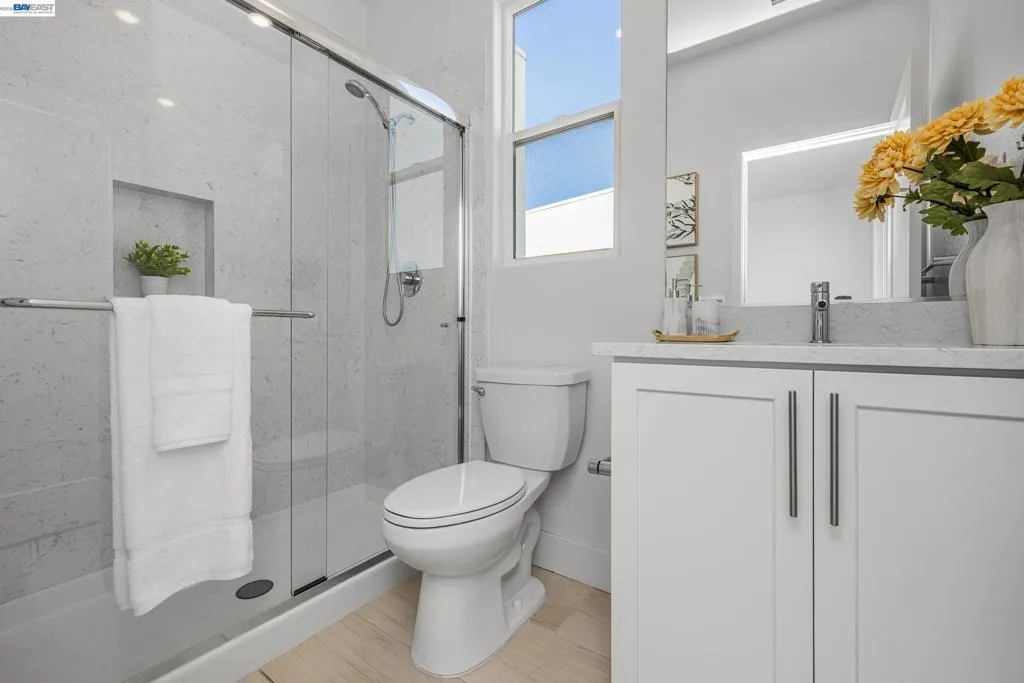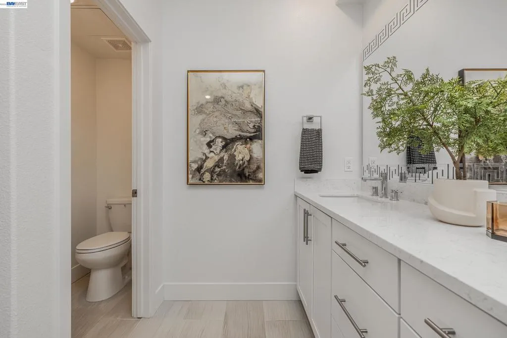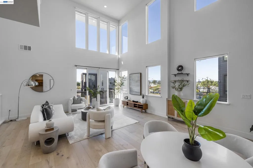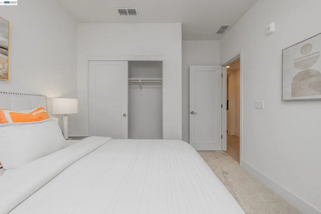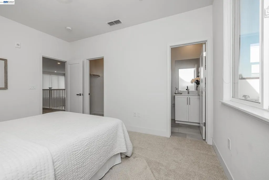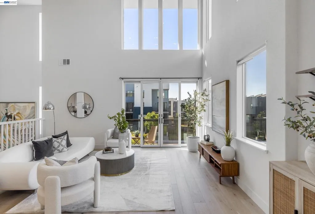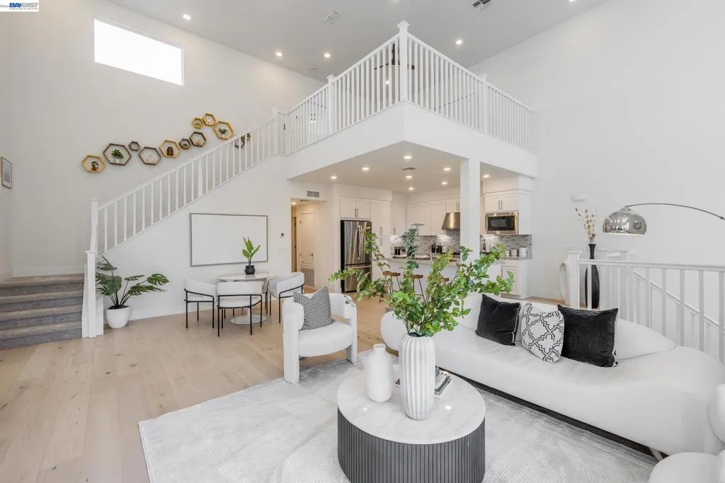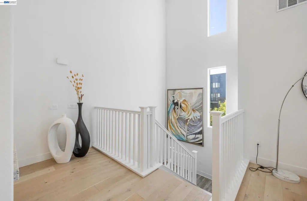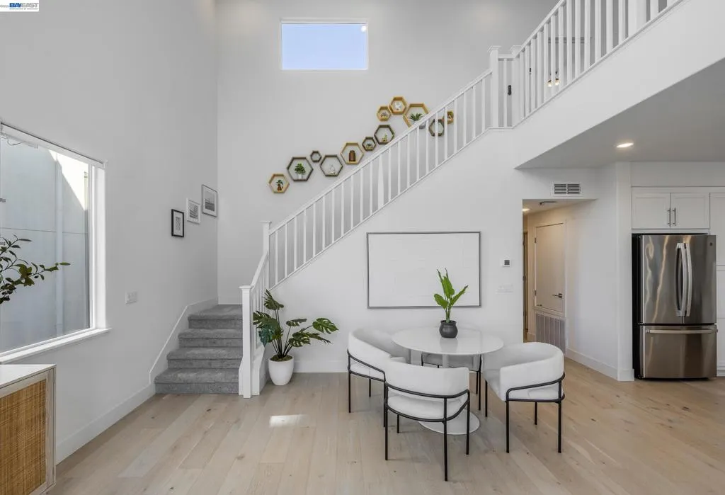 Beautiful modern condo featuring 3 bedrooms & 3 full bathrooms, plus a media or office room upstairs. It offers 2,181 square feet of living space with high ceilings and abundant natural light. The open-concept layout flows seamlessly from the spacious great room to the chef-inspired kitchen, which includes an oversized island ideal for entertaining guests. The kitchen is equipped with stainless steel appliances. Recessed lighting is present upstairs and downstairs. Bedrooms and stairways have brand-new carpets. Features include a tankless water heater, owned solar panels, and dual-pane windows. There is also a laundry room and an attached 2 car tandem garage. Resort Style Amenities include a Fitness Center, Heated Pool with Cabanas, Clubhouse, BBQ areas, and parks. The location is close to BART, Highways 680 & 880, shopping, and major tech campuses, making commuting easier.