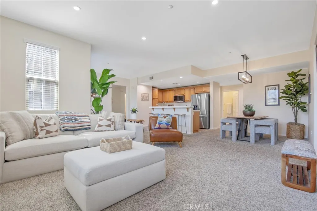 Welcome to resort lifestyle living at its best, in Village at the Park's Brookshire community! Natural light pours in through dual-pane windows (east and south facing) to this 3 bedroom, 2.5 bathroom condo, with 1561 sq ft of living space, high ceilings, recessed lighting, and an open floor plan. Designed for modern living, this is a 3rd floor corner unit, with only one shared wall and nobody above. Enjoy the private and peaceful living experience, all in the midst of a vibrant amenity-filled community. As you enter the front door, there is a half bathroom and laundry room, just inside the entry. You pass by the kitchen to an adjacent dining area and open living room with a balcony, just perfect for relaxing or drinking your morning cup of coffee as you start your day. To your left is the primary bedroom, with a walk-in closet and ensuite bathroom. On the other side of the living room, to your right, are the other 2 bedrooms, separated by a full bathroom. One bedroom is currently used as an in-home office, and the other as a yoga room. There are 2 single-car garages on the ground floor, offering abundant storage and secured parking for your vehicles. The resort-style amenities maintained by the HOA include pool, spa, gym/exercise room, BBQ area, clubhouse, playground, and beautifully landscaped common areas. The HOA fee covers water/sewer, trash, pest control, and exterior window washing, providing you with a low-maintenance and worry-free lifestyle. Situated near shopping, dining, parks and freeway access, this is a rare opportunity. Come and see this exceptional condo, just waiting for you to move in!