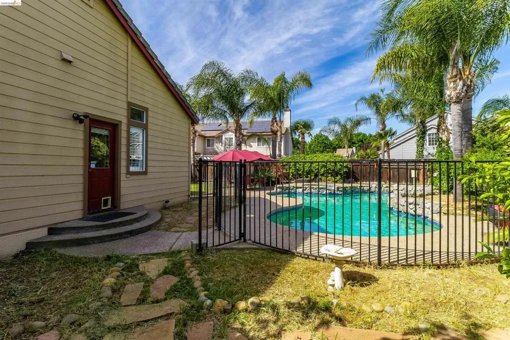 Beautiful 4-bedroom, 3-bathroom family home featuring new carpet and flooring, along with elegant wood shutters throughout. The functional floor plan includes a bedroom and full bathroom on the main level, ideal for guests or multi-generational living. The spacious backyard is perfect for entertaining, complete with a private pool and spa, fruit trees, and a peaceful, private setting. Located in a desirable neighborhood close to shopping, parks, and schools, this home offers both comfort and convenience.