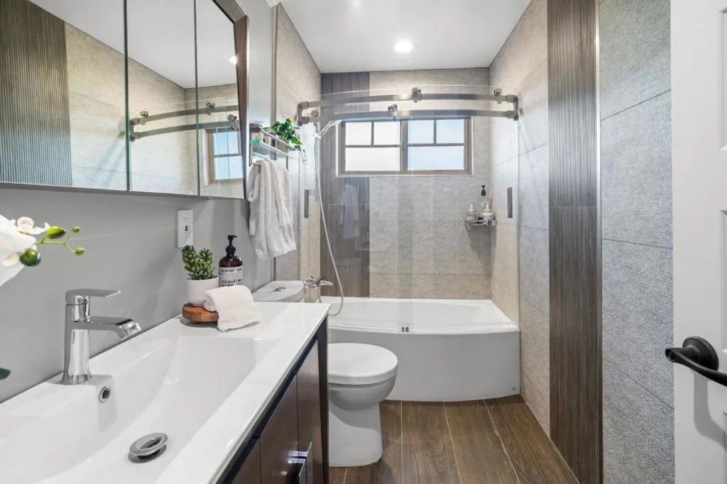 Thoughtfully renovated, this home underwent a complete permitted rebuild in 2017. Taken down to the studs and redesigned with quality craftsmanship and long term functionality in mind. Major upgrades include new framing, roofing, copper plumbing, insulation, drywall, and a 200amp electrical panel. Modern features include dual zone HVAC, a 70 gallon water heater, EV charger, energy efficient fixtures, and Title 24 compliant improvements. Inside, enjoy 8 foot ceilings, sound insulated first floor, European white oak flooring, custom crown molding, solid 5 panel doors, and a gas fireplace anchoring the living space. The kitchen offers custom hardwood cabinetry, granite countertops and backsplash, Samsung appliances, and an oversized Italian stone island ideal for everyday use and entertaining. Bathrooms feature Porcelanosa tile, quartz topped vanities, frameless glass, and a freestanding soaking tub. Exterior updates include Milgard windows, custom wood doors, 2025 exterior paint, professional landscaping with irrigation, lighting, drainage, and a paver driveway. Close to top rated schools, parks, trails, shopping, dining, and freeway access.