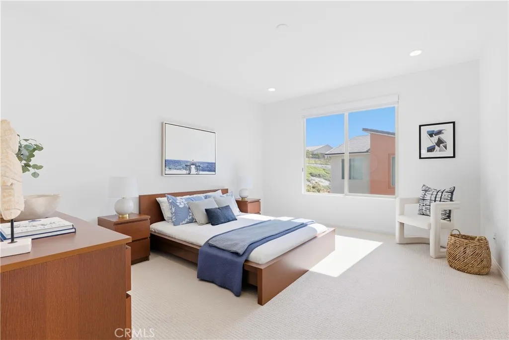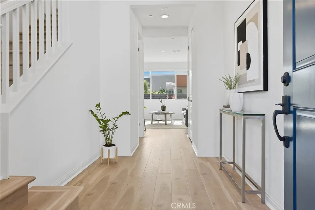 Welcome to this exceptional CORNER LOT home in the desirable Evolve community of Rancho Mission Viejo. Situated on a premium lot with an OVERSIZED backyard and side yard overlooking the hill side, this beautifully designed 3-bedroom, 2.5-bath home with a versatile loft offers the perfect blend of modern elegance, comfort, and functionality. The home showcases a bright open-concept layout ideal for both everyday living and entertaining, with abundant natural light and thoughtfully curated upgrades throughout. The gourmet kitchen serves as the heart of the home, featuring gorgeous quartz countertops, stainless steel appliances, full-height backsplash, hood range, center island with seating, self closing cabinet drawers and a large walk-in pantry. The kitchen flows seamlessly into the living and dining areas, creating a welcoming and connected space. Upstairs, a flexible loft provides the perfect space for a home office, media room, or additional lounge area. The primary suite is a private retreat, complete with a luxurious en-suite bathroom featuring dual vanities, upgraded tile floors, an oversized walk-in shower with elegant finishes, and a generous walk-in closet. Two additional bedrooms offer generous space and abundant natural light, along with a full bathroom featuring dual sinks and tile flooring. The upstairs laundry room is conveniently located and includes extra storage. This home is enhanced with numerous upgrades, including wood laminate flooring throughout, upgraded carpet in the bedrooms, custom window treatments, recessed lighting, ceiling fans and pendant prewiring, upgraded fixtures, and Energy Star-rated systems. Additional highlights include EV wired 2 car garage, tankless water heater, custom window coverings including remote controlled slider shade and PAID OFF SOLAR for efficiency and sustainability. Step outside to a generously sized backyard—perfect for relaxing, dining, or entertaining while enjoying peaceful views and open space. Ideally located near Ranch Camp and within walking distance to Rancho Mission Viejo’s world-class amenities, residents enjoy access to resort-style pools and spas, fitness centers, community farms, parks, playgrounds, sports courts, trails, a K-8 school, coffee shop, arcade, and more. This home offers an unparalleled opportunity to experience elevated living in one of Orange County’s premier master-planned communities.