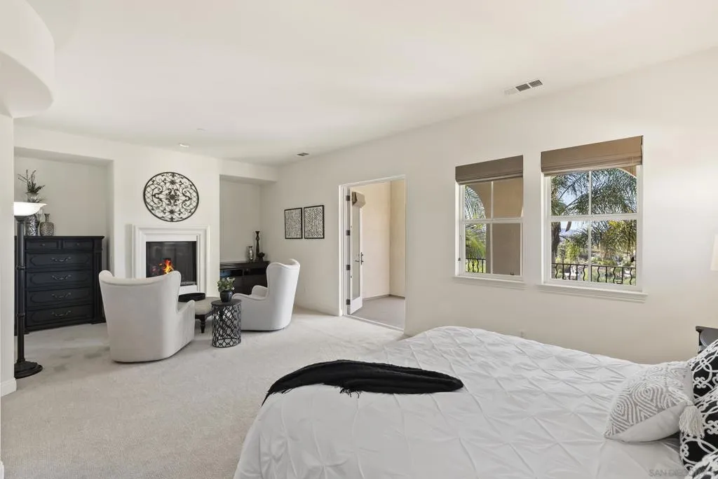 **COASTAL BREEZES. PANORAMIC VIEWS. OVER AN ACRE.** Set on just over an acre in a private enclave of estate homes, this property offers a rare combination of space, privacy, and sweeping sunset views across rolling hills. Elevated and open, the home captures a sense of quiet separation that’s difficult to find. The grounds unfold with expansive lawn and multiple areas to gather, while the natural slope beyond adds depth and flexibility for future use. The backyard is designed for both everyday living and entertaining, featuring a pergola-covered patio, outdoor fireplace, built-in BBQ, and mature landscaping that frames the setting. A gated courtyard entry with fountain creates a strong sense of arrival. Inside, approximately 4,850 sqft offers scale and versatility, with formal living and dining rooms, a private office, and a spacious family room with breakfast area that connects to the outdoors through multiple sets of French doors. All four bedrooms are en suites, including a separate-entry casita ideal for guests, extended family, or a private workspace. The primary suite is generous in size with dual water closets and ample counter space. The centrally located kitchen features granite countertops, stainless steel appliances, and an oversized island, opening to the home’s main gathering spaces. Owned solar and three A/C units provide efficiency and comfort. Move-in ready and highly livable, with a setting and layout that offer both immediate enjoyment and long-term flexibility. Bonsall Elementary School is located just down the street, as is Luiseno Park.