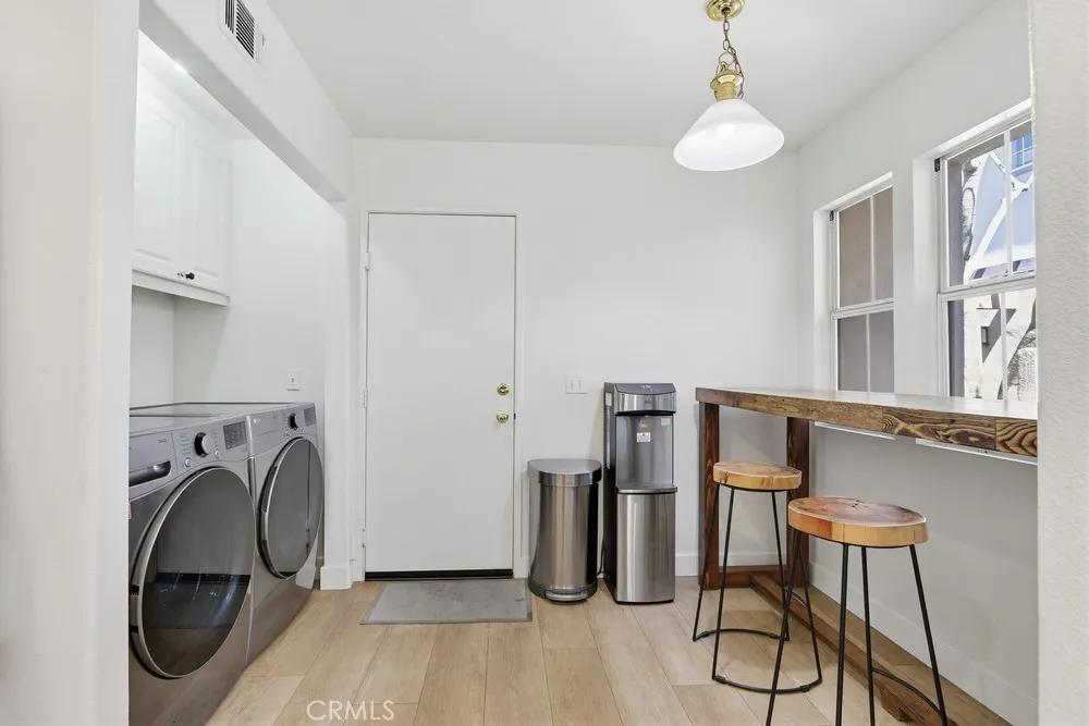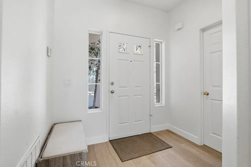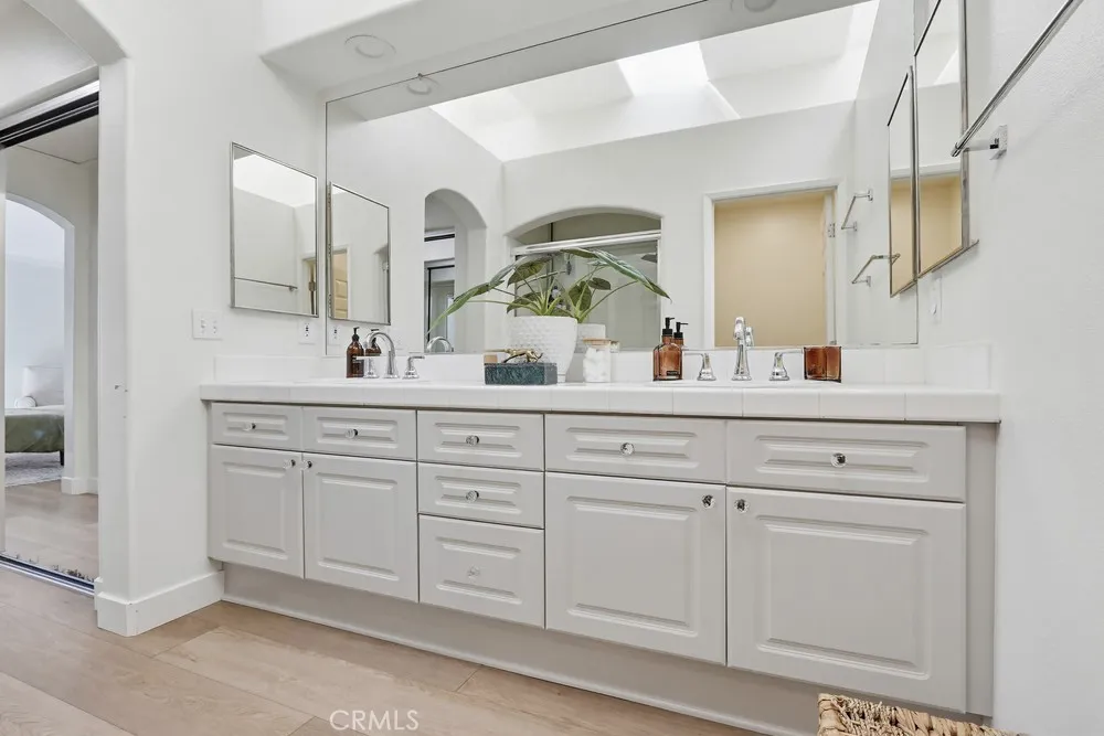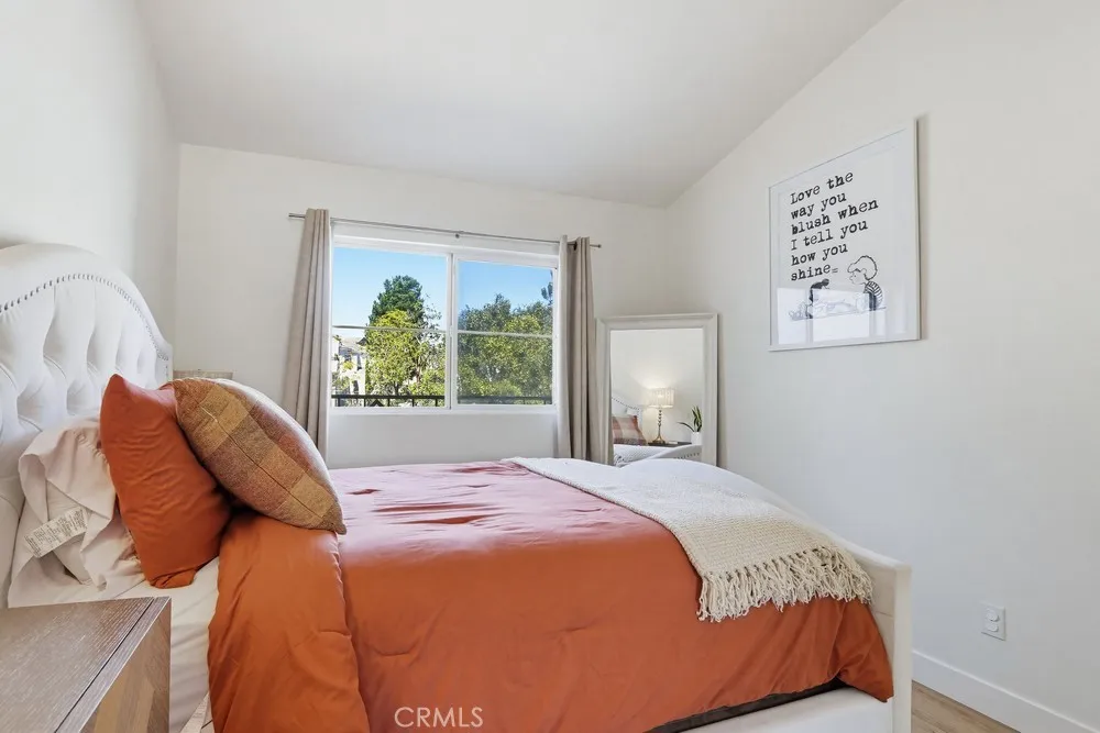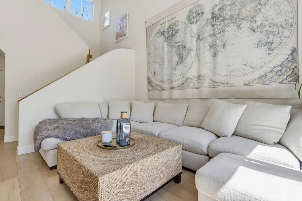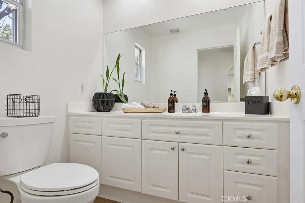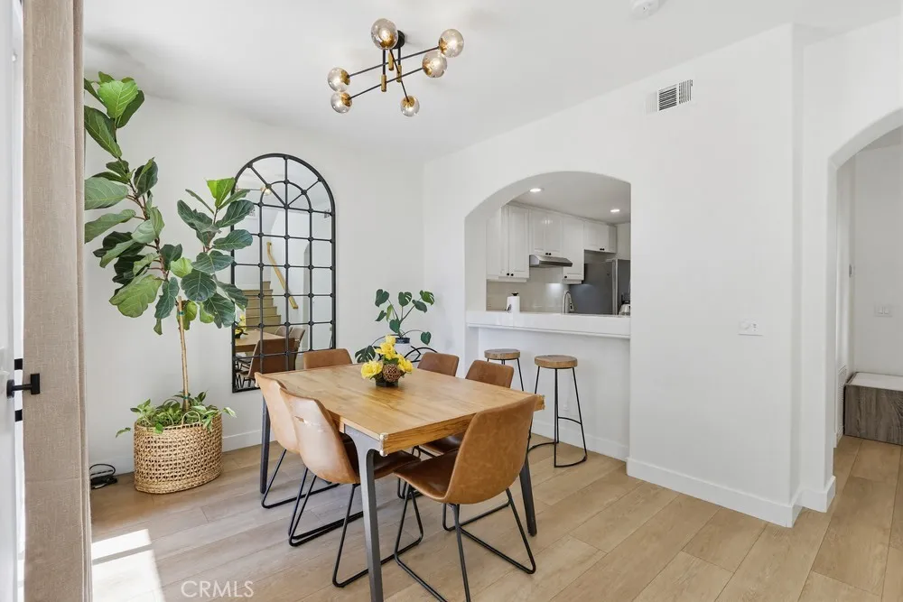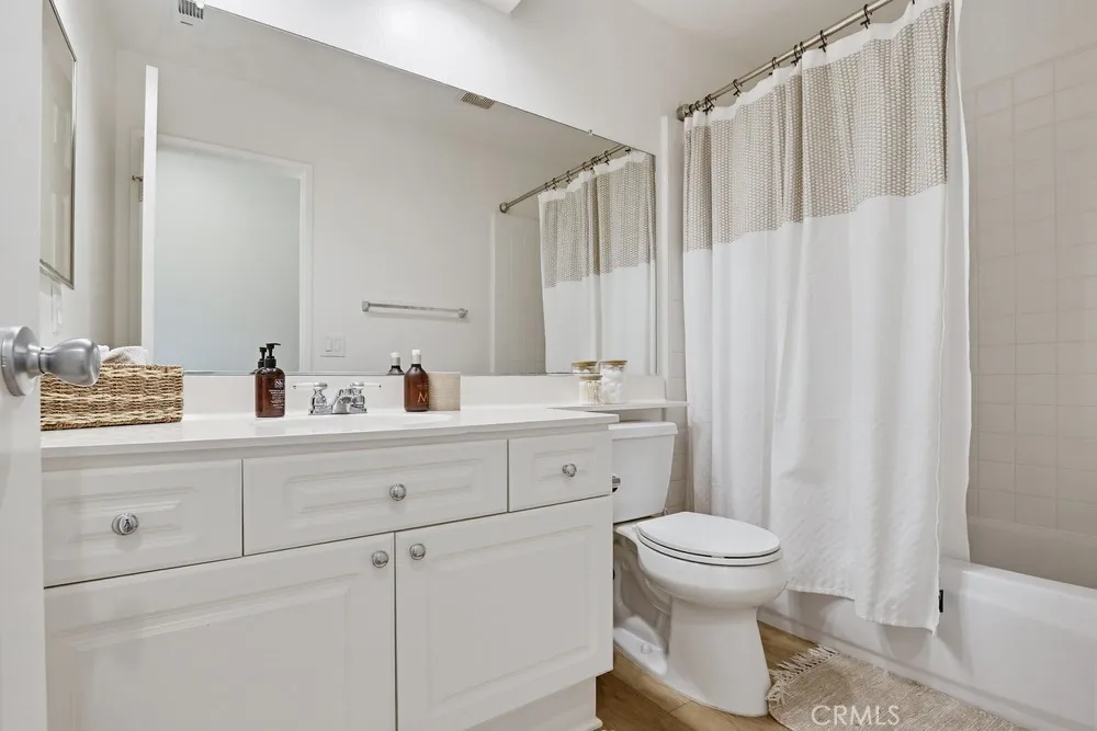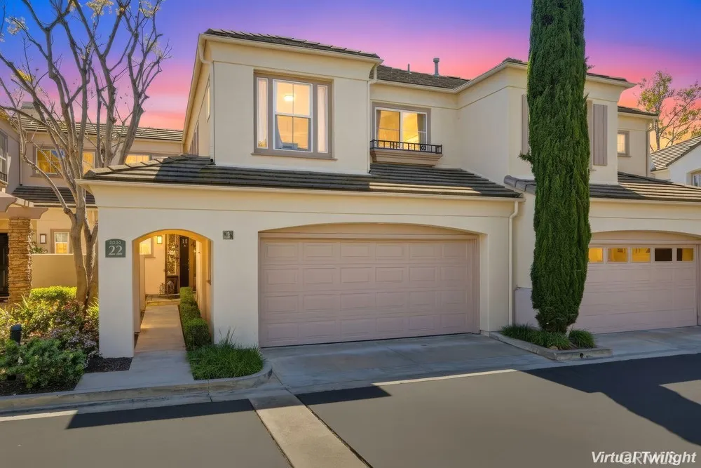 Welcome to your dream home nestled in the scenic hills of Aliso Viejo. This beautifully appointed 3-bedroom, 2.5-bath residence offers an exceptional blend of comfort, convenience, and picturesque surroundings. Step inside to a bright and airy living room, where soaring ceilings and abundant natural light create an inviting, open atmosphere. The thoughtfully designed main level features a seamless open-concept layout connecting the living room, dining area, and kitchen—perfect for both everyday living and entertaining. The kitchen is ideally positioned with a breakfast bar that opens to the dining space, while also providing direct access to the laundry area, which accommodates full-size washer and dryer units, and the attached two-car garage for added convenience. The garage is pre-wired for EV charging. Upstairs, you’ll find three well-proportioned bedrooms offering flexibility for a home office, guest room, or additional living space. The spacious primary suite is a true retreat, highlighted by vaulted ceilings, large, south-facing windows, and oversized dual mirrored closets. The en-suite primary bathroom features dual vanities, a private water closet, and a large skylight that fills the space with natural light throughout the day. A standout feature that runs throughout the home is the newly installed wood-toned vinyl plank flooring throughout—stylish, durable, and incredibly easy to maintain, making it ideal for busy lifestyles or pet owners. Enjoy indoor-outdoor living with a private back patio accessible from both the living and dining rooms. Surrounded by lush hillside landscaping and mature trees, this tranquil space also offers charming peek-a-boo views of the surrounding hills. Residents of the desirable La Mirage community enjoy access to resort-style amenities, including a private pool, spa, BBQ area, and tennis court—all nearby within the well maintained complex. Ideally located near award-winning schools, scenic hiking and biking trails in Aliso and Wood Canyons Wilderness Park, recreational facilities at Soka University, and the shopping, dining, and entertainment of Aliso Viejo Town Center, this home truly captures the best of South Orange County living.