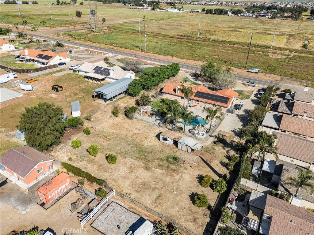 Opportunity awaits at this 4 bedroom traditional ranch in a desirable Menifee location. Situated on approximately 1 acre prestigious lot with a view of the hills. No HOA. This property has been owned by the same owner for many years. The exterior features private front gates with welcoming mature palm trees, multiple front, side & back patio areas and loads of yard area for gardening, RV access, storage area and open space and a fenced swimming pool and BBQ area with plenty of extra space to entertain and relax. The interior boasts an oversized formal living room and dining room area with a picture window. The family room includes a fireplace, and a large kitchen has plenty of pantry space and a breakfast bar. Four generously sized bedrooms and three bathrooms, an attached 3-car garage, and interior laundry room complete this spacious floor plan. The exterior has potential for extra storage space and this location has great access to freeways, shopping, restaurants and so much more. You’re sure to be pleased.