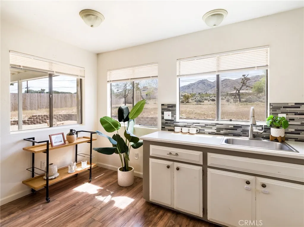 Upper Friendly Hills Gem! Elevated above the street with sweeping views across the Joshua Tree basin and the hills of JTNP rising just beyond. Desert-chic vibes flow through this four-bedroom, two-bath home with an open floor plan and expansive north-facing views from the living room over the valley below. The spacious backyard features a hot tub for stargazing and plenty of room for a future in-ground pool. Just 5 minutes to Joshua Tree National Park’s West Entrance and 2 minutes to downtown shops, restaurants, and cafés. With some of the hi-desert’s highest-rated schools nearby and hiking trails within walking distance, this location is ideal for full-time living, a cozy vacation home near town and the park, or an income property with strong rental potential. See this now and snap it up before it's gone!