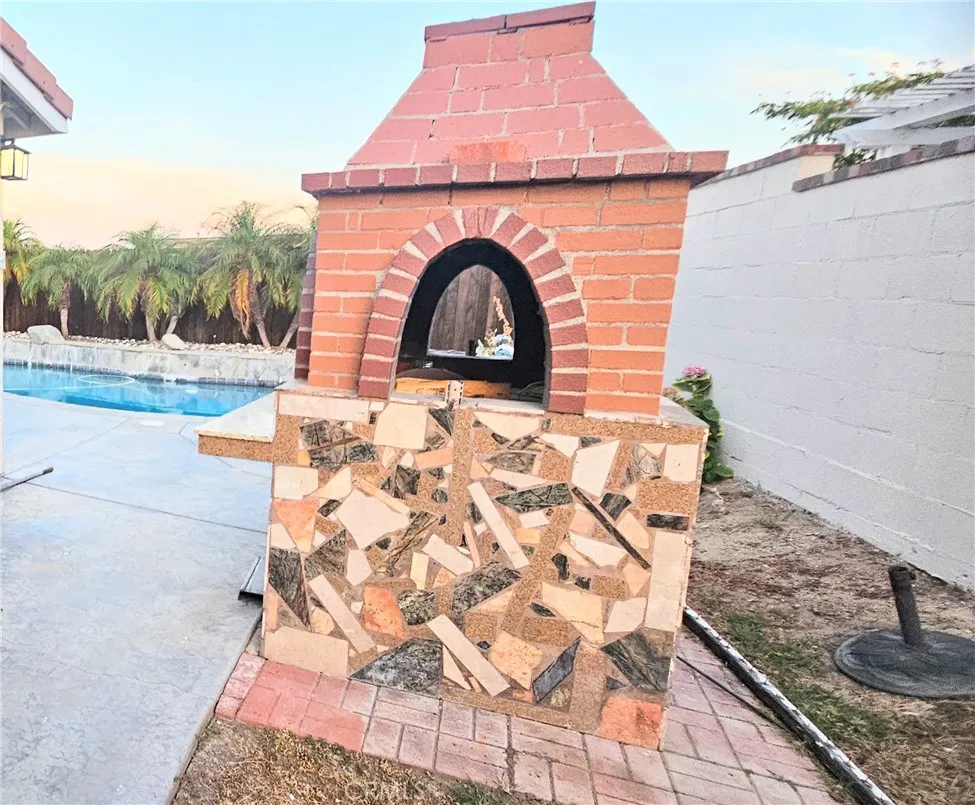 Gorgeous Pool and Spa House with outdoor Brick Oven. Enter into formal living room that has vaulted ceiling and large windows to bring California sunlight in the house. Open concept family room with kitchen that has gas fire place with stones. Recessed lighting through out. Black Granite kitchen counter top with designer back splash. Cabinet with accent glass and built in desk for your lap top. Large pantry along with large laundry room that can be converted into private office. Kitchen has all stainless steel appliance. Master bedroom upstairs with walk in closet and your back yard pool view. The other two guest rooms are spacious to accommodate queen beds. Murrieta's highly sought after neighborhood your own private pool, and spa.