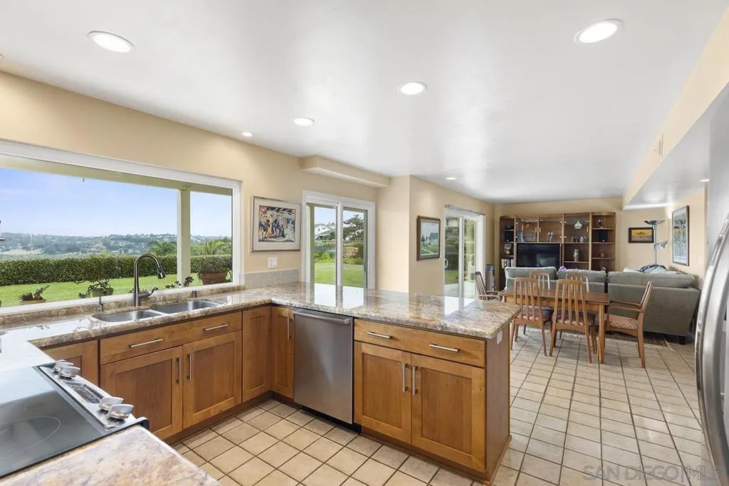 Nestled in the coveted Santa Fe Hills of Solana Beach brings you this fully furnished (negotiable) 5 bedroom, 3 bathroom single family home featuring stunning and sweeping panoramic views of the Pacific Ocean. Come enjoy the finest city in America in one of the most highly sought after neighborhoods. Equipped with solar and includes internet! As you enter you are greeted with your formal living room with seamless flow in to your formal dining area with picturesque window views in to your spacious and lush yard overlooking the famous San Elijo Lagoon. Chef's kitchen with custom cabinetry and cabinets, stainless steel appliances, mosaic backsplash, and more. Second living room/family room with a dry bar and open to your kitchen with direct access to your lovely yard. Downstairs features one full bedroom and bathroom. Upstairs features your primary bedroom with two spacious closets, dual sinks, and direct access to an oversized view facing balcony perfect for enjoying the sunset views. Three secondary bedrooms upstairs with a full hall bathroom. Two car garage plus a bonus "teen" room attached. This home comes fully furnished from cutlery to dining table sets, couches, beds, desks, and more. Gardener included. Located in the heart of Solana Beach with highly rated schools - Solana Vista Elementary just down the street, Earl Warren Middle, and Torrey Pines High Schools. Nearby many outdoor hiking and biking trails, Lomas Santa Fe Executive Golf Course, San Dieguito Park, grocery stores, restaurants, banking, I-5 freeway, beautiful Solana Beach and its Farmer's market!