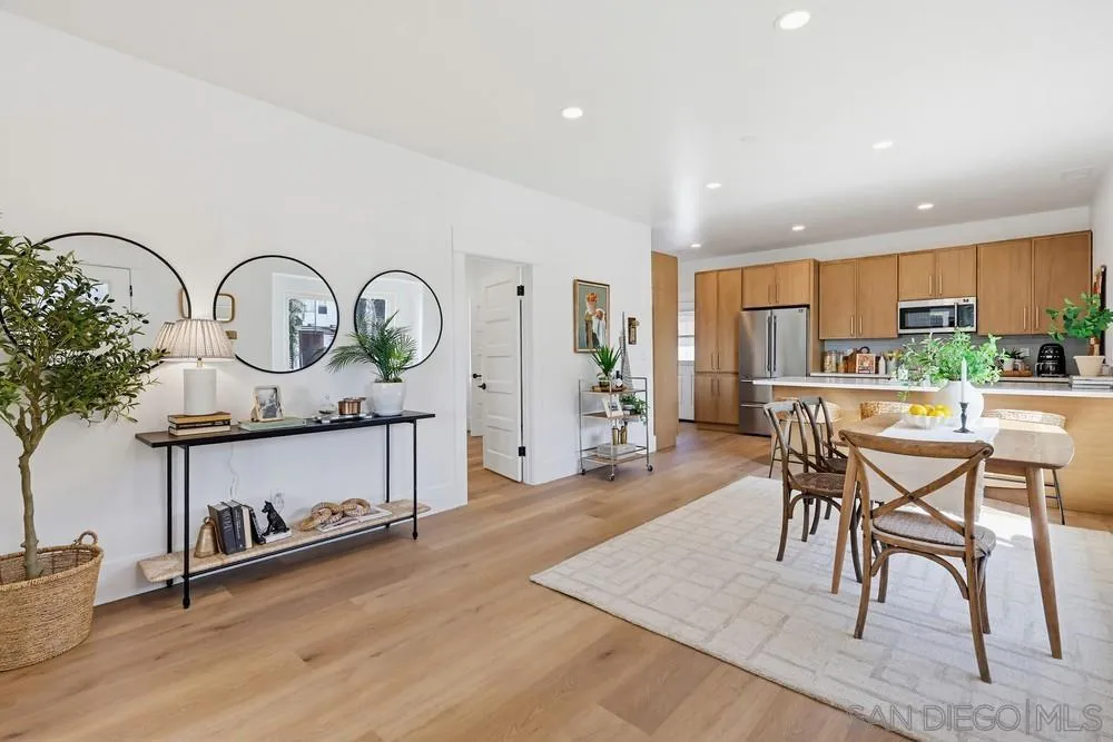 Located in the heart of University Heights, adjacent to North Park and Hillcrest, this beautifully renovated home offers the best of urban living with a Walk Score of 95. Enjoy close proximity to Balboa Park, top dining, nightlife, live music, and easy access to major freeways—all from one of San Diego’s most central and vibrant neighborhoods. Perched above Georgia Street with city light views, the home has undergone a comprehensive renovation with major system upgrades throughout, including new electrical with replaced sub-panels (main, garage, and hot tub), new copper plumbing supply lines, updated ABS waste lines, new roofing and sheathing, brand new HVAC and ducting, and a new water heater. Fully electric and energy-efficient, the home is also EV-ready with a Tesla charger installed. Inside, soaring 9-foot ceilings in the kitchen, living, and dining areas create a bright, open feel with abundant natural light. Designer finishes include all-new cabinetry, quartz countertops, stainless steel appliances, luxury vinyl flooring, and beautifully tiled shower surrounds. Outdoor spaces feature drought-tolerant landscaping with turf, pavers, a reconstructed deck, and drip irrigation ready for a privacy hedge. An oversized garage offers a unique opportunity for ADU conversion or potential for an additional unit above, providing excellent income or multigenerational living potential. A true turnkey, low maintenance property combining lifestyle, location, and future upside.