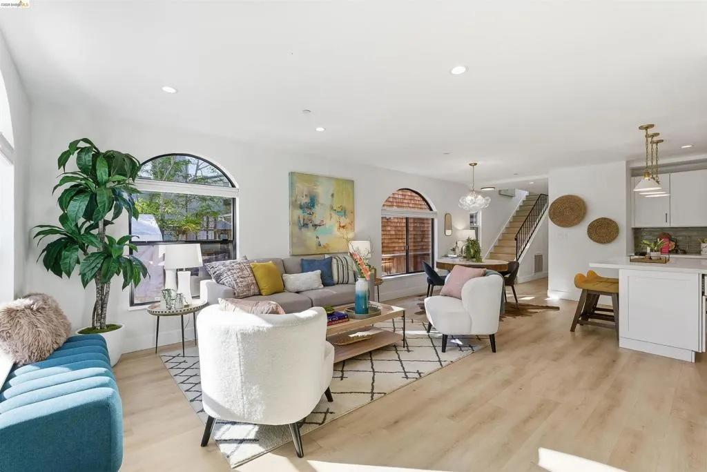 Welcome to this charming 3-bedroom, 2.5-bath home in sought-after Albany, extensively remodeled in 2024 with thoughtful updates throughout. Move right in and enjoy a fresh, cohesive design that blends comfort and modern style. Large windows fill the home with natural light, enhancing the open-concept living, dining, and kitchen areas—ideal for both everyday living and entertaining. The updated kitchen features stainless steel appliances, generous storage, and ample prep space. A hallway leads to a half bath, laundry area, and ample storage, before opening to the private backyard, where a spacious deck invites outdoor dining and relaxation. The main-level primary suite provides a peaceful retreat with an en-suite bath and direct deck access. The upper level features two additional bedrooms and an updated full bath. Major 2024 improvements include roof, tankless water heater, Andersen windows, flooring, sprinkler system, electrical, and plumbing, along with front yard landscaping and irrigation. Conveniently located near top-rated schools, Memorial Park, Albany Aquatic Center, Solano Avenue, El Cerrito Plaza, and transit (Walk Score 90), this home offers the best of comfort, convenience, and updated living.