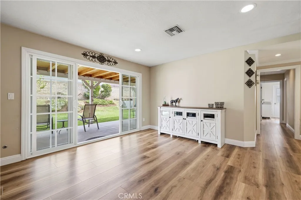 Step into this beautifully updated single-story home where style meets comfort. Attractive curb appeal and a spacious driveway with room for six cars set the stage. Inside, fresh paint, recessed lighting, and LVP flooring create a bright, open-concept living area, perfect for relaxing or entertaining. With details in every corner, this home showcases masterful craftsmanship throughout. The 2021 remodeled kitchen is stunning, featuring a farmhouse sink overlooking the front window, an inviting center island, granite countertops, custom cabinetry, and an ornate tile backsplash behind the gorgeous Viking stove with white knobs and matching range hood. A breakfast nook, French door to the backyard, and custom granite top buffet and wine bar complete the space. Three bedrooms and two updated bathrooms offer comfort and privacy. Outside, the backyard is your own oasis with a permitted patio cover, chicken coop, roaming space, stately workshop equipped with electrical subpanel ready for expansion, fruit trees, and garden boxes perfect for fresh herbs or veggies. Additional perks include a tankless water heater, direct-access garage, gated RV access with two RV dump sites, plus no HOA or Mello Roos. Located near shopping, dining, and schools, this home is as practical as it is chic. Welcome home!