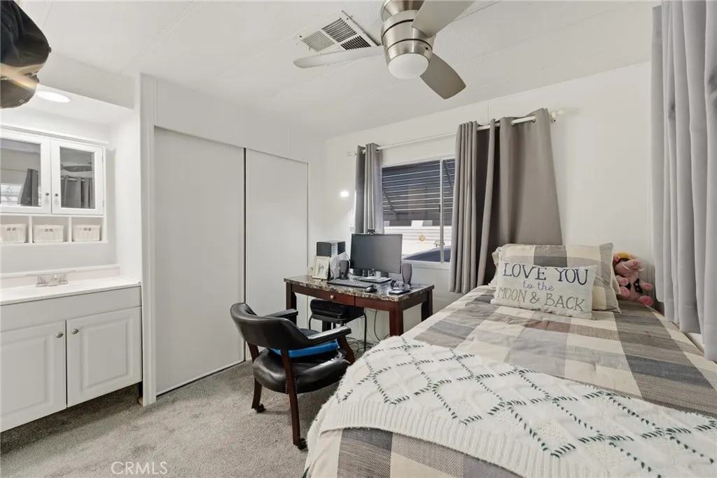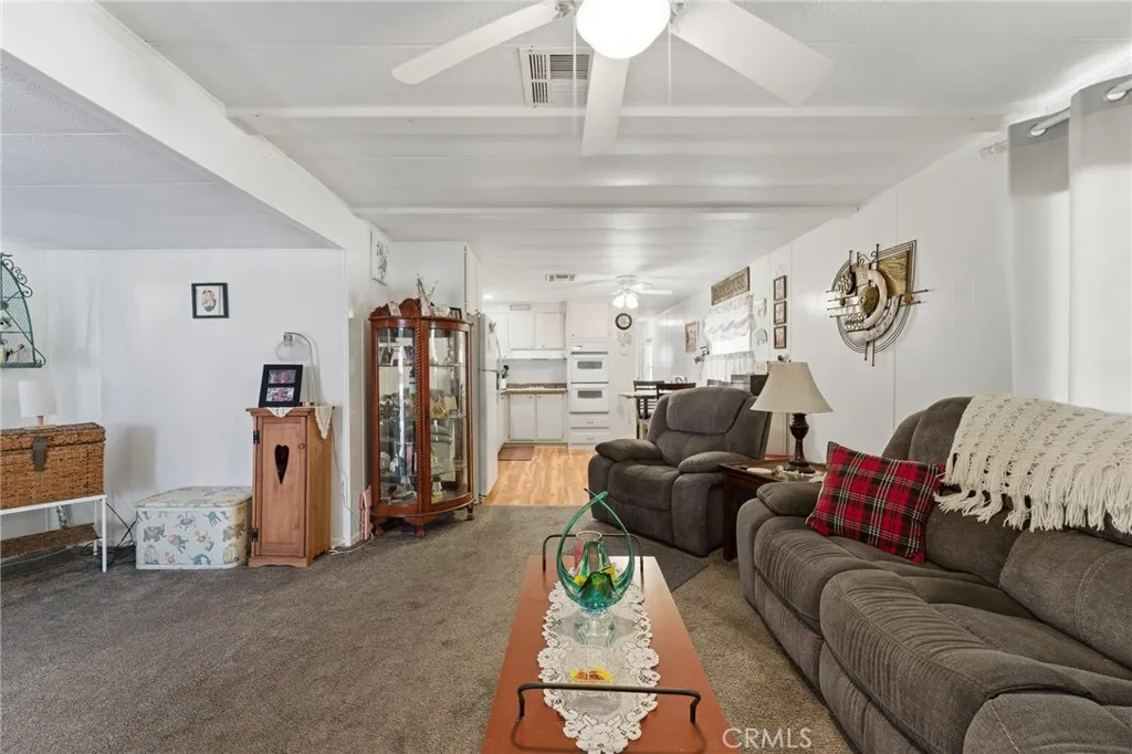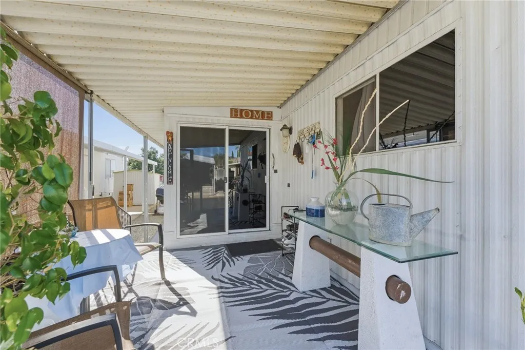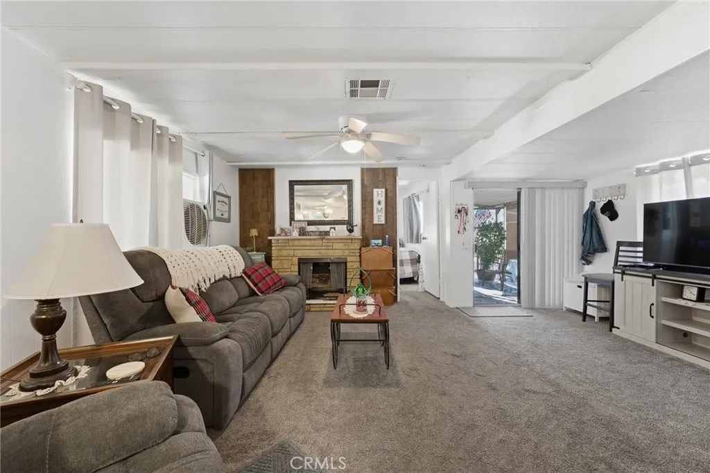 Charming and well-maintained single-wide mobile home with expando, offering approximately 864 sq ft of living space in The Colony, Calimesa's most desirable 55+ senior MHP! This home features 2 bedrooms and 1.5 bathrooms with a bright, open layout and abundant natural light. The kitchen is equipped with a gas cooktop with hood, dishwasher, and double oven, along with a cozy dining area. Additional features include ceiling fans, window coverings, indoor laundry hookups, and an evaporative cooler for energy-efficient comfort! The fully enclosed patio provides a versatile bonus space ideal for relaxing or entertaining! Exterior amenities include a covered carport and two storage sheds. A great opportunity for affordable, low-maintenance living in a peaceful senior community!