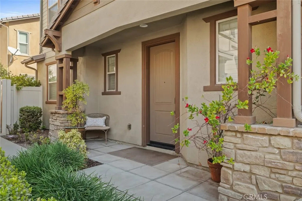 Welcome to this beautifully upgraded detached condo in the highly desirable College Park community of Chino—where comfort, safety, and a true neighborhood feel come together. This newer-built home (2015) offers a rare and versatile floor plan featuring 3 bedrooms plus a spacious bonus room, 2.5 bathrooms, and approximately 2,103 sq ft of thoughtfully designed living space. The second floor includes a convenient Jack & Jill bathroom, while the third-floor bonus room—surrounded by 12 windows—floods with natural light and offers endless possibilities as a home office, 4th bedroom, or entertainment retreat. Designed for both style and functionality, the home showcases engineered bamboo flooring on the first floor, custom plantation shutters throughout, and an inviting kitchen highlighted by a handmade jade green tile backsplash, stainless steel appliances, upgraded ventilation hood, and a reverse osmosis drinking water system. Additional upgrades include a whole house fan for energy-efficient cooling, tankless water heater with regular descale maintenance, upgraded Berber carpet upstairs, and a high-end Lockly Visage Zeno facial-recognition smart lock for modern convenience and security. The primary suite features a walk-in closet with a north-facing window, creating a bright and airy retreat. Step outside to a beautifully curated backyard oasis with custom plant trellises, fragrant blooms of azalea, osmanthus, and jasmine, along with organic raised garden beds, a textured concrete patio, and built-in ledge seating—perfect for relaxing or entertaining. Situated in a safe, welcoming, and well-maintained community, residents enjoy resort-style HOA amenities including a heated lap pool, splash park, jacuzzi, 24-hour fitness center, clubhouse, and multiple parks with tennis courts, basketball courts, playgrounds, and more. HOA also conveniently covers trash service and exterior landscaping. Ideally located just minutes from major shopping centers including Target, Walmart Supercenter, Marshalls, TJ Maxx, Ross, 99 Ranch, H Mart and popular dining options—everything you need is within easy reach. This is a rare opportunity to own a move-in ready home with a unique layout in one of Chino’s most sought-after communities.