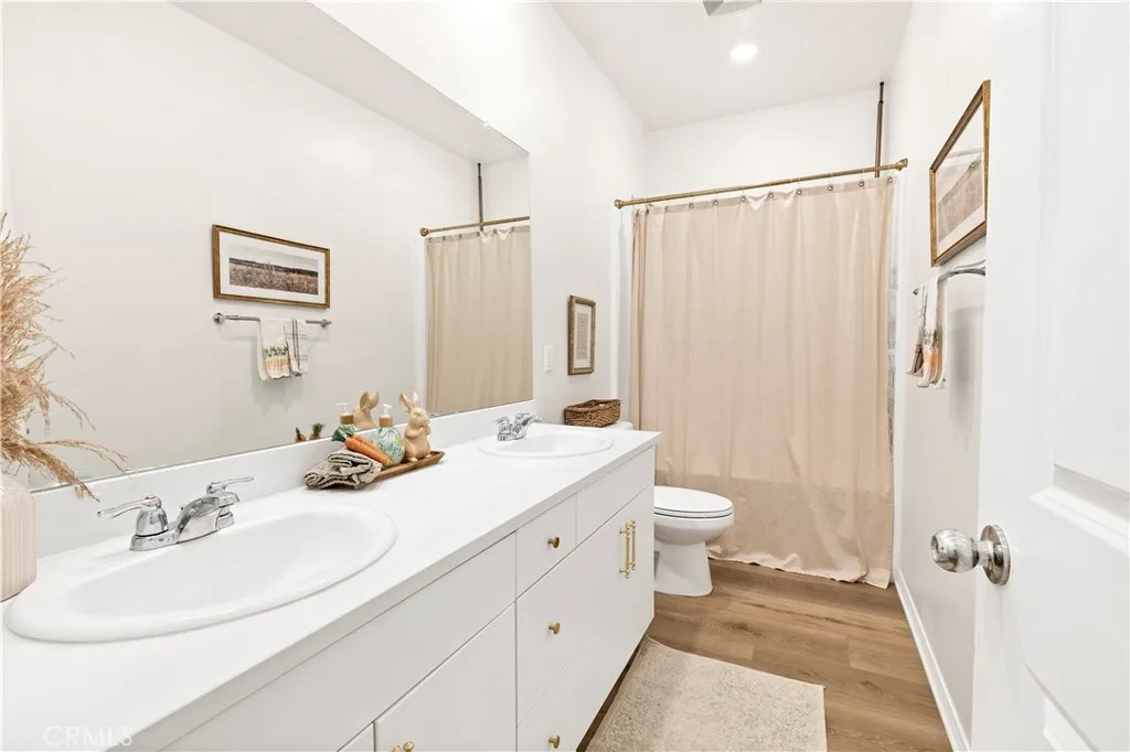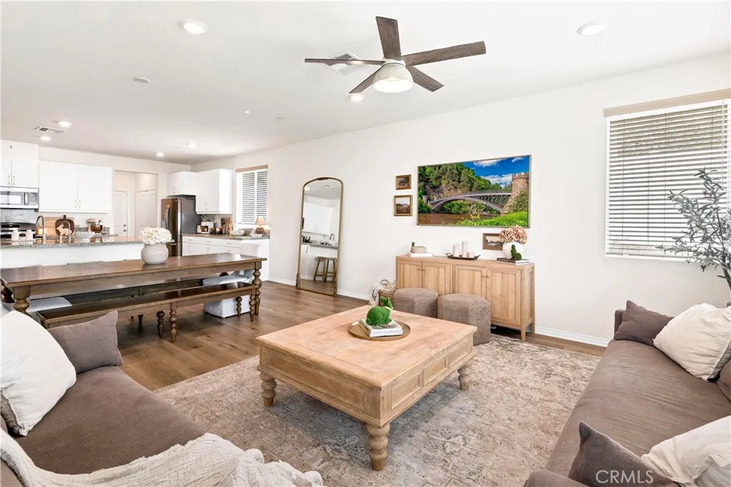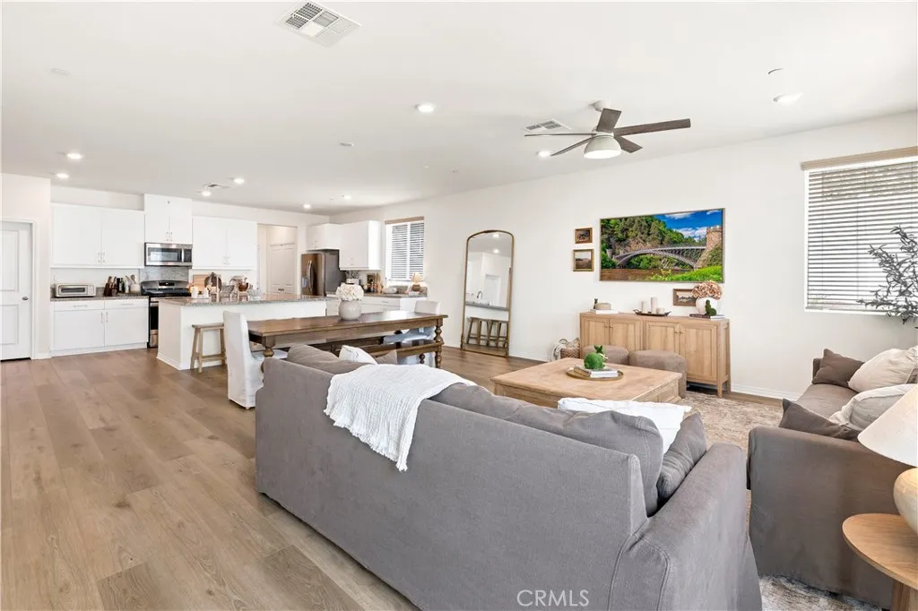 Welcome to this beautifully upgraded, move-in ready single-story home located in the highly desirable Hidden Terrace neighborhood of Menifee. Offering 4 Bedrooms, 2 Bathrooms, and approximately 2,336 Sq. Ft. of thoughtfully designed living space, this home combines modern style with everyday functionality. The open-concept layout is filled with natural light and creates a seamless flow between the kitchen, dining, and living areas, making it ideal for both daily living and entertaining. The kitchen features a large center island, granite countertops, a walk-in pantry, and ENERGY STAR GE appliances. The spacious primary suite serves as a private retreat with a spa-like bathroom that includes a soaking tub, glass-enclosed shower, dual vanities, and a generous walk-in closet. Additional features throughout the home include luxury vinyl plank flooring, fresh interior paint, upgraded ceiling fans, window coverings, a whole-home security system, and a water softener system. Situated on a premium lot, the fully finished backyard offers grass, concrete, upgraded drainage, sprinklers, and electrical already installed, providing a functional and low-maintenance outdoor space. Additional highlights include a Tesla backup battery. Located within the sought-after Hidden Terrace community in Mountains Edge, residents enjoy nearby parks, walking trails, and convenient access to shopping, dining, and major commuter routes including the 215 and 74. This home offers a rare combination of upgrades, location, and move-in readiness. Schedule your private showing today.