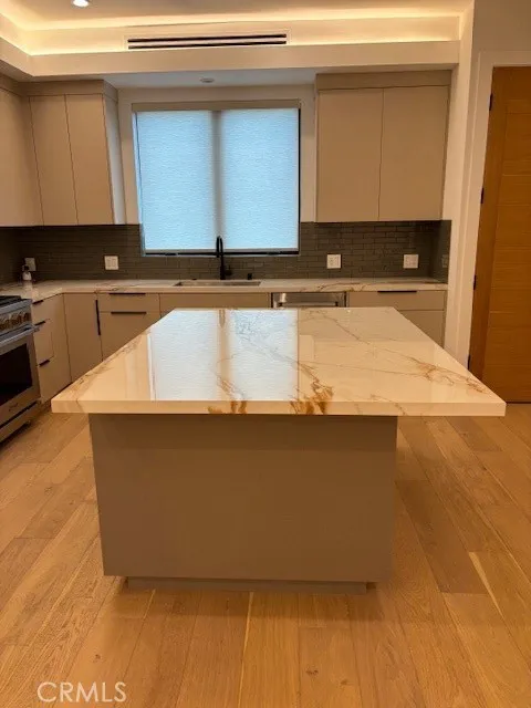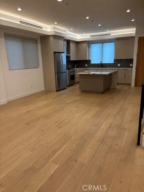 Gorgeous tri-level small lot single family home south of the boulevard within walking distance to everything Sherman Oaks' lifestyle has to offer...amazing location. Set off the street through the gated driveway this one is part of a small four home development. Over 2000 sqft of living with three bedroom all ensuite with resort styled baths. No detail left to spare! Gourmet kitchen with Dacor appliances and quartz counters with glass splash back. Great large center island and self closing cabinets and drawers. Fabulous for entertaining. Nice balcony off the living room. Impeccable wide plank solid wood floors. High ceilings and all low voltage recessed lighting. Ground level bedroom that has direct access to private enclosed patio and yard. All bedrooms are excellent size with custom cabinetry/closets and amazing detailing throughout. Wait until you see the top level loft that opens to an expansive upper rooftop deck with amazing views. There is a closet in the kitchen with full sized stackable washer and dryer included. Custom window treatments throughout the home for those oversized windows. The direct access two full size side-by-side garage also has EV hook up. Solar panels up top are operating and saving on electrical expenses. Level 3 Green makes this one a winner. Set back off the street makes this one so quiet and private. Terrific access to the studios and westside. Low monthly management fee. Also available for lease at $6750 per month.