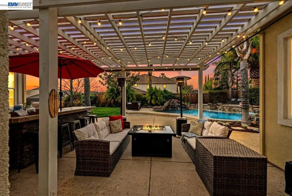 Stunning east-facing South Livermore 5 bedroom, 2.5 bathroom home on a spacious corner lot with mountain views and an extended backyard designed for resort-style living. Top notch floor plan with impressive 10-foot ceilings create a bright, airy atmosphere throughout the open-concept living and dining area, complete with a cozy fireplace.The beautifully updated kitchen features refaced cabinets with elegant hardware, sleek quartz countertops, stainless steel appliances, and a generous island breakfast bar, perfect for everyday living and entertaining. The private primary suite offers a walk-in closet and a spa-inspired bath with double sinks and a luxurious jetted tub. Step outside to your backyard oasis showcasing a solar-heated pool, expansive spa, built-in BBQ bar, and putting green, ideal for gatherings and relaxation. Conveniently located near top-rated schools, trails, dining, wineries, and shopping. Come live the South Livermore DREAM!