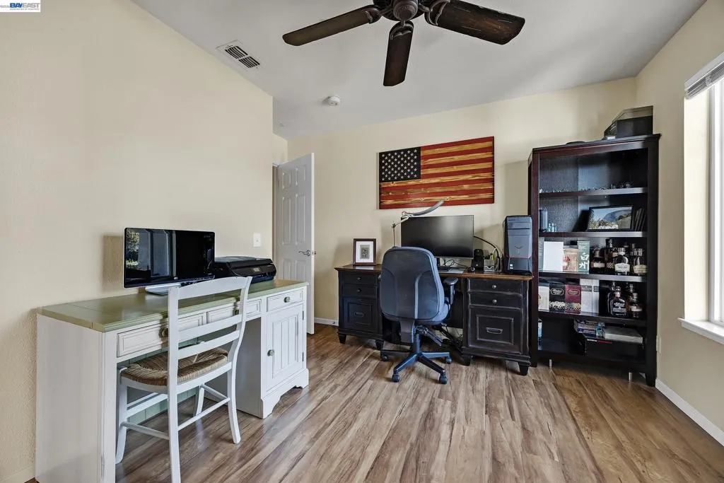 Welcome to this beautifully maintained home in Livermore’s desirable Danbury neighborhood, offering 4 bedrooms and 2 full bathrooms. Vaulted ceilings create a bright, open feel, while the dedicated office provides a versatile space ideal for working from home, a playroom, or flex use. The kitchen and dining area flow seamlessly together, highlighted by a cozy brick fireplace, perfect for everyday living and entertaining. The kitchen features granite countertops, a center island with seating, stainless steel appliances, and abundant cabinetry for storage. Recessed lighting enhances the main living spaces, adding a modern touch throughout. The spacious primary suite boasts a high ceiling and an updated bathroom complete with a luxurious standalone soaking tub. Step outside to a thoughtfully designed backyard with clean paver hardscaping, lush grass, fruit trees, and mature landscaping, an inviting space for relaxing or hosting guests. Additional highlights include a 2-car garage and beautifully manicured front yard, offering great curb appeal.