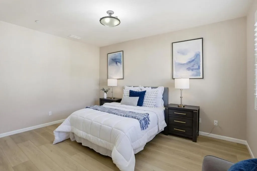 Immaculate and impeccably maintained, this 4-bedroom townhome boasts a premium location in the desirable Ardenwood neighborhood Villa D'este community. It features abundant large picture windows that offer lush garden views from the living room and opulent soothing natural light. The open floor plan is decorated in contemporary neutral colors and quality laminate wood flooring throughout. The spacious and functional kitchen is equipped with ample dark Shaker cabinets, SS appliances, expansive granite counters, and a convenient central island. Step out onto the intimate deck from the living room, seamlessly blending indoor and outdoor living. The first floor guest/in-law bedroom is adjacent to a full bath, providing privacy and convenience. Second sunny deck off the this bedroom with an open view. The generous master suite includes a lavish ensuite bath with both large bathtub and shower place, dual sink vanity, and a spacious walk-in closet. Enjoy outdoor activities in the nearby parks including Coyote Hills Regional Park and Ardenwood Historic Farm. Convenient location: Short commute to Fremont/Newark shopping centers. Easy access to BART, ACE, freeways 101/880/84. Top rated school district: Warwick Elementary (8/10), Thornton Middle (9/10) & American High (10/10).