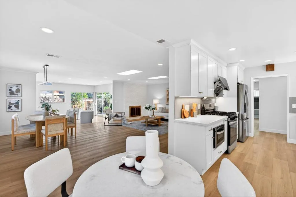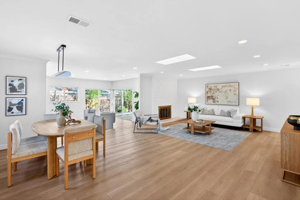 Newly remodeled and tucked away on a calm cul-de-sac in a highly sought-after neighborhood near the Cupertino and Los Altos borders, this exceptional home blends modern comfort with an unbeatable location. Just steps from Top-Rated Cupertino schools, the renowned Serra Park and Homestead Crossing shopping center. Inside, new luxury vinyl plank flooring runs throughout a bright, freshly painted and thoughtfully designed floor plan, with vast natural light pouring in through dual-pane windows and skylights. Recessed lighting and a cozy wood fireplace create a warm, refined living space. The dining area flows seamlessly into a sleek, updated kitchen featuring stainless steel appliances, quartz countertops and ample cabinetry. All bedrooms are comfortably-sized with their own closets, while the primary suite offers a large walk-in closet. Additional highlights include a two-car garage with washer, dryer and utility sink, upgraded electrical main panel (200A), along with a step down family room that opens to a newly landscaped backyard with lush greenery and new lawn. Ideally located near Silicon Valleys leading tech campuses including LinkedIn, Apple, and Meta, with convenient access to Highways 85, 280, and Caltrain. Do not miss your chance to own this gleaming gem. It will go FAST!