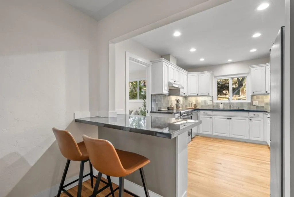 Newly updated Monterey 2,312 sqft single level located on a park like, very private 11,761 sqft corner lot adjacent to open space! The designer updates are tasteful and thoughtfully planned. Gleaming newly finished wood floors! Open concept living/dining area with cozy fireplace and built ins! Updated Chefs Kitchen with new quartz counters, new backsplash, under cabinet lighting, stainless appliances and breakfast bar island. 4 bedrooms! Generous primary suite with french doors leading to the park like backyard, 2 closets and classic beamed ceiling! En suite bathroom is newly updated with custom double fluted vanity and walk-in shower! 3 more large bedrooms and guest bathroom with all new shower/tub tile surround, new custom vanity and luxurious cedar walls. One bedroom is purposed currently as office with its own entry, inside laundry, 1 car garage. More updates include: new paint, new garage door, new door, new light and plumbing fixtures. The huge yard is like a bird sanctuary with no back neighbor. Convenient to vibrant shopping centers, the Beach, Schools, Parks, hiking trails, Pacific Grove, downtown Monterey restaurants, shops, golf, entertainment and Downtown Carmel!
