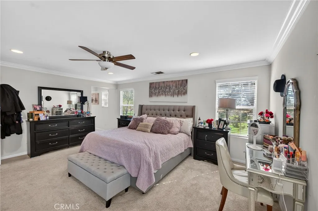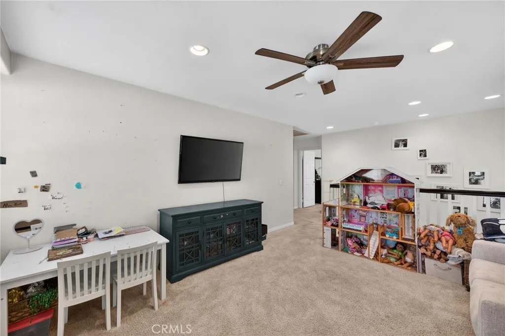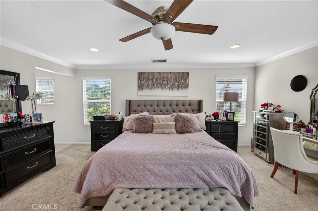 Beautiful move-in ready single-family home located in the highly desirable Preserve community, within an award-winning school district. This spacious residence offers 4 bedrooms and 3 bathrooms, including a convenient downstairs bedroom and full bath—ideal for guests or multi-generational living. The inviting living room features an updated fireplace, surround sound, built-in speakers, and automatic blinds. The kitchen is perfect for entertaining with granite countertops, wood cabinetry, stainless steel appliances, and a large bar-top island, plus direct access to the attached two-car garage for added convenience. Upstairs offers three additional bedrooms, a versatile loft, and a dedicated laundry room. The primary suite features crown molding, a spacious walk-in closet, dual sinks, and a separate tub and shower, along with peaceful park views. Step outside to a covered patio and a private, serene backyard with no rear neighbors—just a quiet walking trail and greenbelt behind you. Additional highlights include PAID-OFF solar for energy efficiency. Residents enjoy amenities including a pool, parks, and scenic walking trails, all just minutes from new schools and recently developed shopping centers. This is a must see!