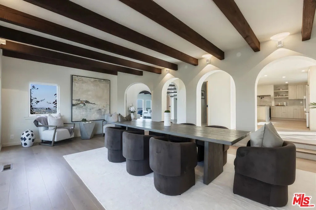 Located on a gated promontory in the Hollywood Hills, this contemporary Mediterranean compound offers 360-degree views of the city and canyon. The property consists of two distinct structures totaling 5,600 square feet of living space on a 0.39-acre lot.The main residence is a 3,645 sq. ft. home that has undergone a full remodel, featuring an open-concept layout with stone and hardwood flooring. Adjacent to the main house is a 2,150 sq. ft. detached guest house, ideal for use as a studio, office, or secondary residence.Property Specifications* Bedrooms/Bathrooms: 5 Beds | 5 Baths.* Living Area: 5,600 Total Sq. Ft. (Main House + ADU).* Lot Size: 17,189 Sq. Ft. (0.39 Acres).* Parking: 4-car garage plus additional driveway parking for 6+ vehicles (10 total spaces).* Security: Gated entry with a comprehensive security system.* Outdoor Features: Expansive wrap-around decks, outdoor fireplace, and an above-ground pool.* School District: Located within the Wonderland Avenue School boundaries.This property is a high-utility compound offering privacy and significant square footage just minutes from the Sunset Strip.