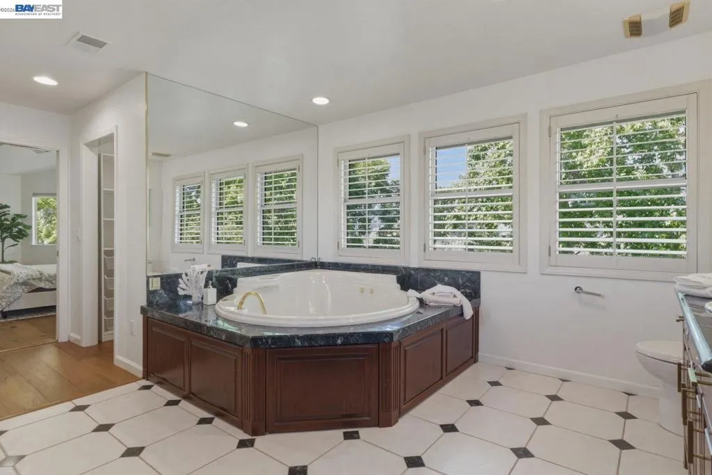 East facing house, set on a quiet cul-de-sac in the desirable Canyon Lakes South community, this beautifully maintained home offers privacy, scenic views, and no rear neighbors. With approximately 3,068 sq ft of living space, the thoughtfully designed layout includes a spacious upstairs bonus room with custom detailing and built-ins, plus a main-level bedroom and full bath ideal for guests or a home office. The well-appointed kitchen features premium appliances, including a built-in Café refrigerator and Viking gas range, perfect for everyday living and entertaining. The primary suite provides a relaxing retreat with a soaking tub, separate shower, and dual walk-in closets. Additional highlights include hardwood flooring throughout, plantation shutters, custom closets, built-ins, and a wine room. Enjoy resort-style amenities with 24/7 gated security, 3 swimming pools, tennis courts, and beautifully maintained trails and golf course. Conveniently located near shopping, dining, golf, parks, City Center, and with easy access to I-680 and top-rated SRVUSD schools.