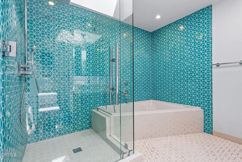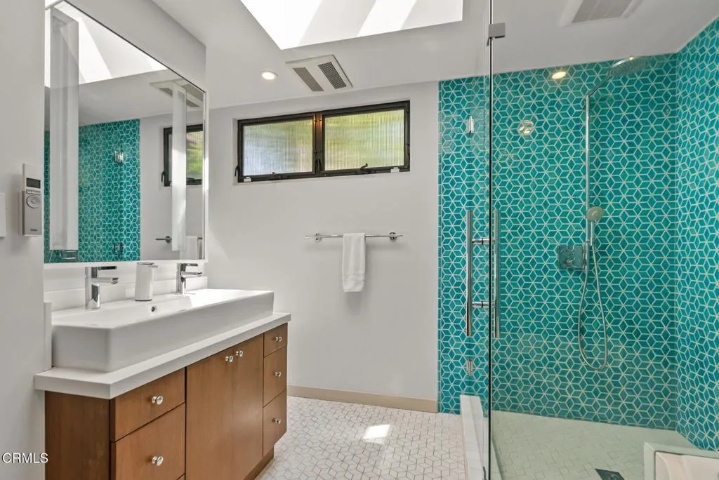 Perched high atop Pasadena's peaceful San Rafael Hills, 412 Elmwood Drive is a design-forward retreat where exceptional privacy, thoughtful updates, and spectacular views come together in perfect harmony. More than just a home, this is a private sanctuary that feels worlds away, yet deeply connected to its lush, natural surroundings. At the street level, a 2-car garage rests near a gated outdoor staircase leading up the verdant hillside. Open the gate, ascend the stairs, and discover your bliss, starting with a whimsical, secluded front patio. Framed by greenery and hidden from the street below, you're instantly transported to a world of peaceful serenity. Inside, a dramatic great room welcomes you with soaring vaulted ceilings, exposed beams, and an expansive picture window that stretches across the space, showcasing the San Gabriel mountains like living art. Bathed in natural light, this open-concept living and dining area is equal parts stylish and inspiring--perfect for intimate gatherings, creative pursuits, or evenings soundtracked by vinyl and conversation. The beautifully designed kitchen features a large skylight, custom cabinetry, premium JennAir appliances, and sleek stone countertops, all anchored by a generous workspace and oversized sink. A nearby powder bath and laundry room add convenience, while Walnut hardwood floors, Heath Ceramics tile accents, and Milgard windows enhance the home's modern yet warm aesthetic throughout. Two spacious bedrooms feature vaulted ceilings and picturesque mountain views, while a third--tucked privately down the hall with French doors to the backyard--makes an ideal studio, office, or creative sanctuary. The bedrooms share a spacious, designer bathroom with a dramatic skylight and dual vanities. Out back, a tranquil, verdant oasis awaits. A partially covered deck draped in vines filters soft, dappled light, surrounded by lush landscaping and mature orange trees--evoking a serene, hidden garden escape. Moments from Little Flower Cafe, the Rose Bowl, Eagle Rock, and Old Town Pasadena, this home blends distinctive architectural appeal, privacy, and an effortless indoor-outdoor lifestyle in one of Pasadena's most desirable enclaves.