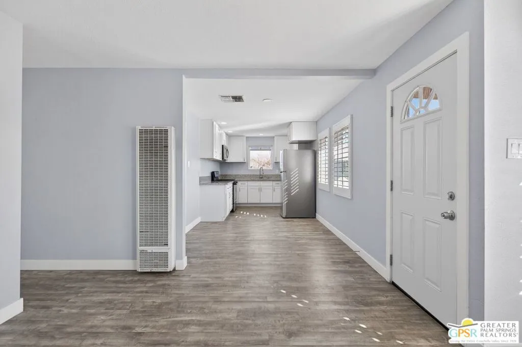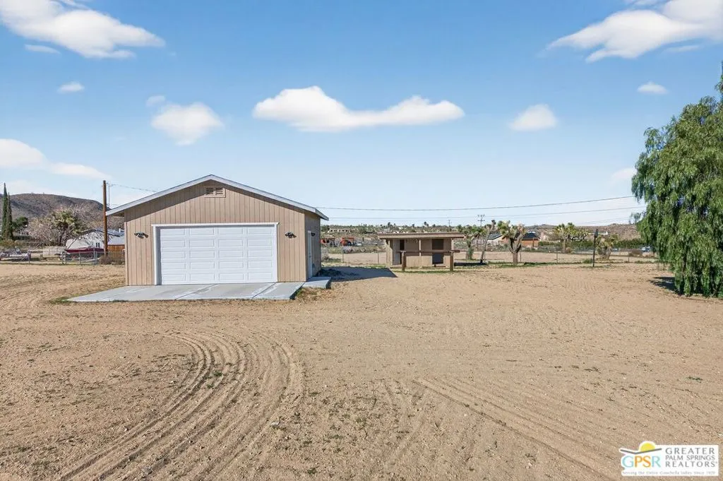 Experience modern comfort and functional ranch living in this updated 3-bedroom, 1-bathroom Yucca Valley home. Situated on 1.25 flat, usable acres, this property is fully fenced and outfitted with the essential infrastructure for a variety of lifestyles, from off-road enthusiasts to hobby farmers. The interior has been refreshed throughout with a clean, modern aesthetic. The light and bright kitchen features white shaker cabinetry, granite countertops and stainless steel appliances. Other highlights include durable, wood-look LVP flooring, vinyl windows, modern paint and trim, and an updated full bathroom.The exterior of the property features an oversized 2-car garage, perfect for a workshop or storage space for desert toys. The sprawling acreage is entirely usable and comes equipped with a separate storage shed, raised garden beds, and a horse hitching post.