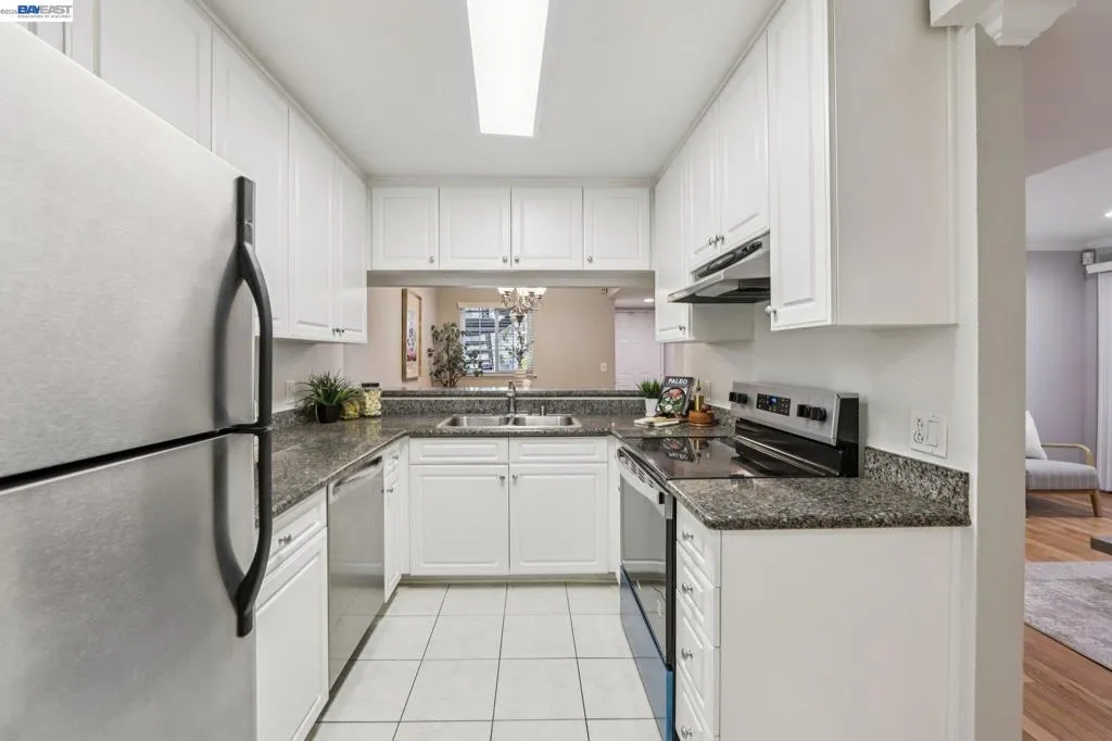 Open Sunday 3/29, 2-4pm. Discover quiet, peaceful living in this inviting 2 bedroom, 2 bath condo in Oakland’s desirable Shadow Woods community. This 1,123 sq. ft. ground floor home offers easy access and a thoughtfully designed layout that combines comfort with functionality. The well appointed kitchen features a dishwasher, brand new electric stove and an attached in unit laundry room for convenience. The adjoining dining and living areas are bright and welcoming, showcasing well maintained hardwood flooring and recessed lighting. Each bedroom has been refreshed with paint and brand new carpet and includes its own en suite bathroom for added privacy. Both rooms also offer direct access to a private patio, creating a seamless indoor outdoor living experience. This unit comes with one covered and one uncovered designated parking spot and is conveniently located near guest parking and a community car wash station. Residents of Shadow Woods enjoy a variety of amenities, including a swimming pool, two spas, fitness center, clubhouse, dry sauna, and playground. With easy access to Interstate 580, this home is just minutes from local attractions like the Oakland Zoo and the scenic beauty of Skyline Boulevard.
