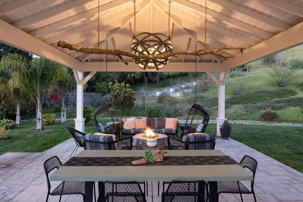 Honey Hill is a 21+ acre estate in the Aptos Hills that combines privacy, scale, and proximity, set among the rolling landscapes of Larkin Valley with panoramic views and minutes to Aptos Village and the coast. Built in 2014, the 3,643 sq ft home is designed for both daily living and entertaining, with wraparound brick porches, high ceilings, abundant natural light, and seamless indoor outdoor flow. The living room features a fireplace, built-ins, and direct backyard access. The chef's kitchen includes marble countertops, farmhouse sink, island, breakfast bar, walk-in pantry, and breakfast nook, with a dining room opening to the porch and a separate library for retreat. The main-level primary suite offers herringbone floors, walk-in closet, and a bath with clawfoot tub and double shower, while upstairs includes three bedrooms, full bath, family room, and office. Outdoor amenities include covered dining, firepit, outdoor kitchen, gardens, fruit trees, trails, and space for horses. Additional features include an oversized garage, mudroom, RV hookups, generator, and potential for a barn or ADU. A rare position where acreage and privacy meet coastal access, offering the feel of a secluded ranch just minutes from Aptos, Santa Cruz, and the broader Monterey Bay.