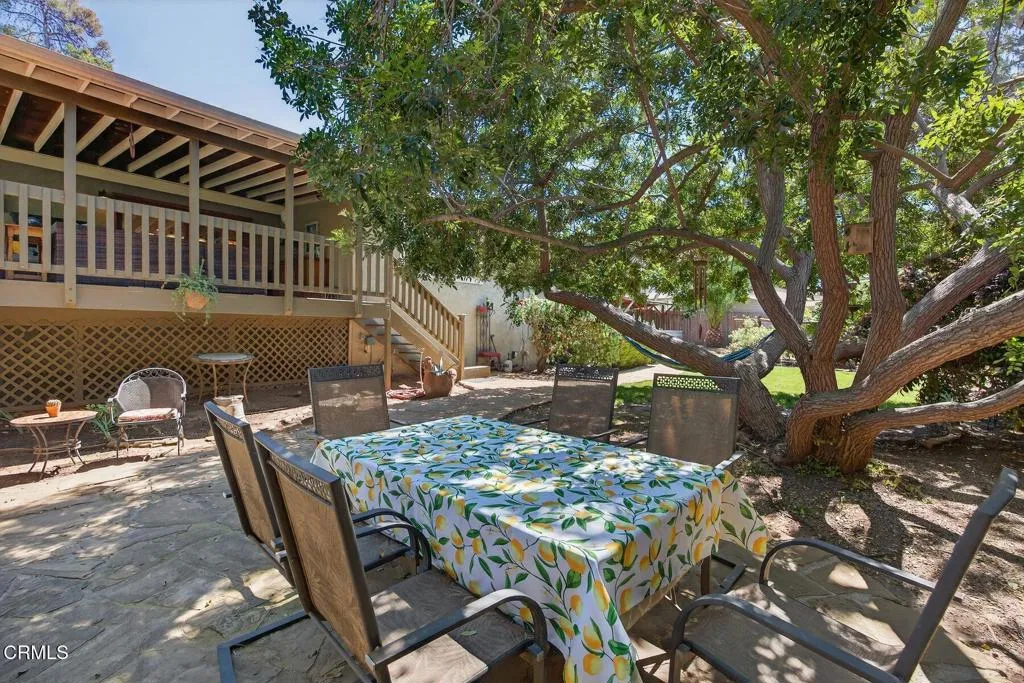 Tucked away in one of Oak View's most private and peaceful neighborhoods, this lovingly upgraded 3 bedroom, 2 bath home offers a relaxed country lifestyle with thoughtful modern touches. A gated driveway and fully fenced grounds create a sense of security and freedom, perfect for pets, play, and everyday ease.Inside, the home is warm and inviting, showcasing beautiful wood floors, vaulted ceilings, and an abundance of natural light. The open-concept kitchen has been tastefully remodeled with generous counter space, ample storage, and a seamless flow into the dining area, complete with a cozy fireplace and additional sitting space for gathering. The living room feels both airy and grounded, with built-in shelving and architectural character that enhances the home's charm. The primary suite offers a quiet retreat with dual closets and a well appointed layout.One of the home's standout features is the oversized covered patio. An effortless extension of the living space that invites year round indoor/outdoor living. Whether hosting gatherings, or unwinding with a morning coffee, this versatile space creates the perfect backdrop for relaxed California living.Step outside and experience the true essence of this property. The oversized lot invites you to slow down and enjoy, whether lounging in the chic cowboy pool, tending to raised garden beds, or harvesting from your own established orchard. A remarkable variety of fruit trees, including navel and blood orange, Ojai Pixie tangerine, grapefruit, avocado, peach, nectarine, plum, apple, pomegranate, and lemon, creates a rare farm-to-table lifestyle right at home. Thoughtful landscaping details like river rock pathways, a tranquil water feature, and a charming wood shed add to the property's unique appeal.Perfectly positioned just minutes from Ventura's beaches and Ojai's scenic trails, this home offers the best of both worlds--privacy, nature, and convenience in one special setting.