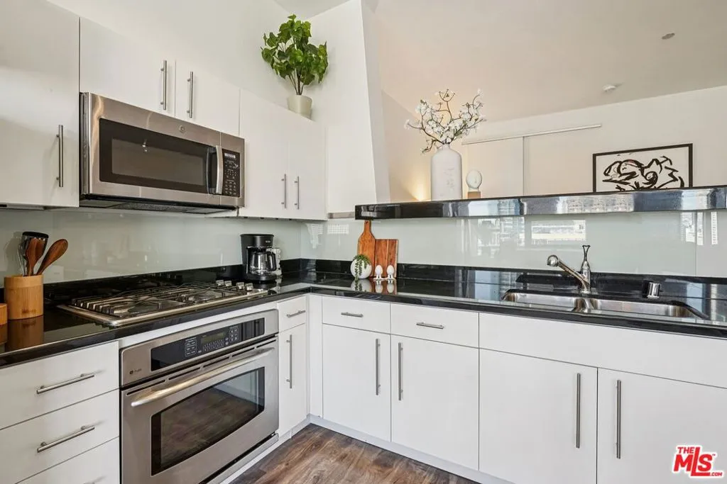 Residence #2209 captures a rare balance in Downtown LA. Expansive, light-filled living paired with a calm, curated aesthetic. A full wall of windows frames sweeping skyline views, bringing the city in while maintaining a sense of privacy above it all. Just beneath, a cleverly concealed window seat offers both additional storage and a quiet perch to take in the view. The open-concept layout flows effortlessly from living to dining to kitchen, anchored by warm wood flooring and softened by thoughtful staging that highlights both comfort and scale. The kitchen is sleek and functional, featuring stainless steel appliances, black stone counters, and clean-lined cabinetry that blends seamlessly into the living space. The bedroom retreat offers a quiet separation with a soft, elevated feel. Clean lines, neutral tones, and layered textures create a home that feels both modern and inviting. Ideally positioned at the intersection of Downtown's Financial District and South Park, you're moments from Whole Foods, LA Live, restaurants, coffee spots, and the pulse of city living. Residents enjoy one of Downtown's most iconic addresses, known for its dramatic architecture and resort-style amenities. Imagine a 17th-floor pool deck with a spa, cabanas, an outdoor dining area, BBQ grills, and a pet park, all offering panoramic views of Los Angeles and beyond. A home that feels intentional, effortless, and distinctly above it all awaits you.