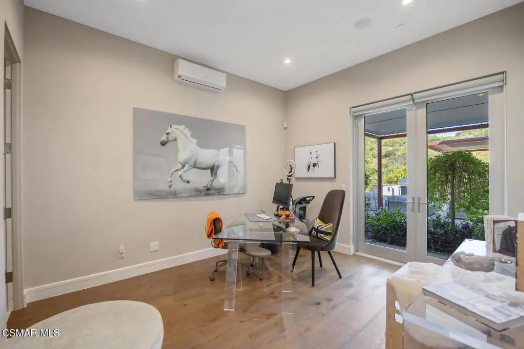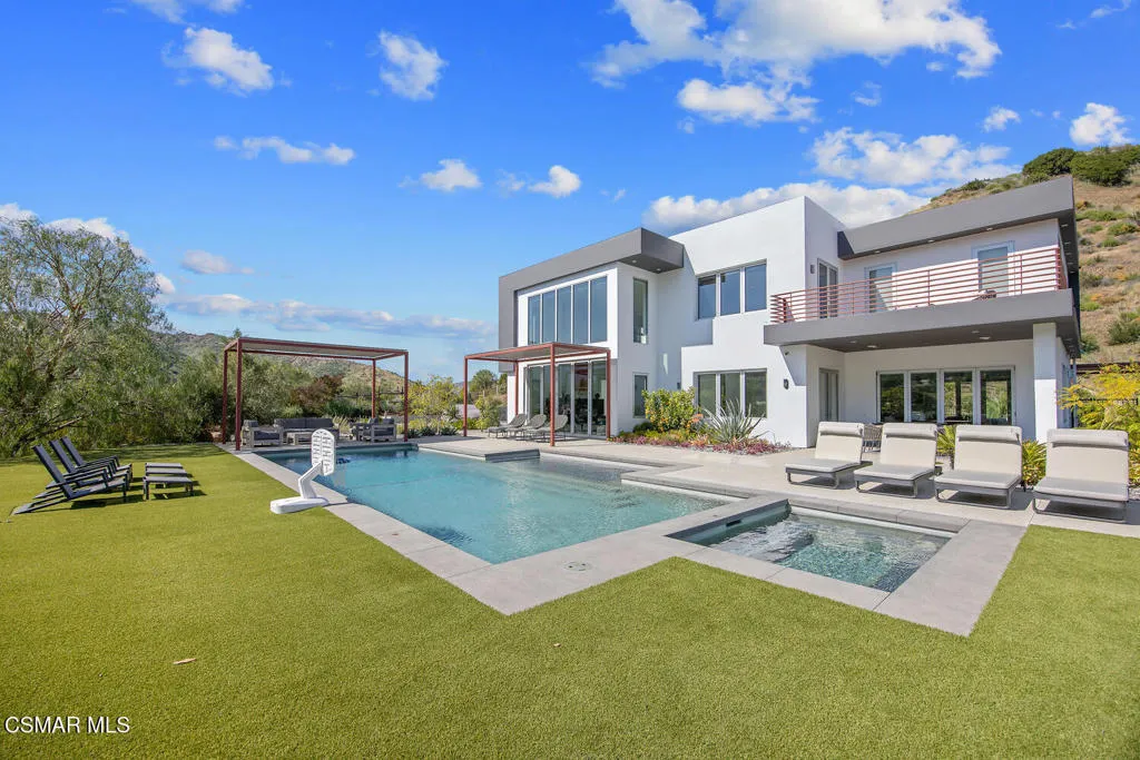 Selectively positioned at the top of a privately gated cul-de-sac in the prestigious Sierra Creek enclave of Cornell, tucked between Malibu and Agoura Hills , this modern estate offers privacy, scale, and seamless integration with the surrounding Santa Monica Mountains. Set on approximately 2.31 usable acres, the property features a residence with exceptional design, expansive living spaces, and breathtaking canyon and mountain views from nearly every vantage point.The open floor plan showcases soaring ceilings, walls of glass, and abundant natural light. A chef's kitchen flows effortlessly into the great room, dining area, and living room, creating an ideal environment for both everyday living and entertaining. The home includes five spacious ensuite bedrooms and six bathrooms, with one bedroom conveniently located on the main level.The primary suite features double-door entry, a luxurious bath, custom closets, and a viewing terrace overlooking the grounds. Outdoor living is highlighted by expansive patios, a sparkling pool and spa, and professionally designed drought-tolerant landscaping with a clean, modern aesthetic.Equestrian amenities include a two-stall barn with adjoining paddocks, tack room, and a 60-meter round pen with professional footing, and additional land suitable for a jumping or dressage arena. The property also offers space for a potential ADU, guest house, tennis court, or lot split (buyer to verify).Smart home features include a Lutron lighting system, motorized solar shades, surround sound, and integrated indoor-outdoor LED lighting. Ideally located minutes from the 101 Freeway, Malibu, the Westside, and within the highly regarded Las Virgenes School District. Nearby hiking, riding trails and local wineries enhance the lifestyle this exceptional property provides.
