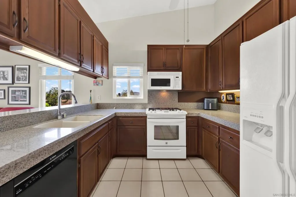 Welcome to this beautifully situated twin home in the highly sought-after 55+ community of Oaks North. Perched on an elevated lot, this home captures gorgeous mountain and rolling hill views from the back patio, offering a peaceful, private setting that truly feels above it all. Upgrades include: dual-glazed vinyl windows throughout, new HVAC system, 2-car garage, and OWNED solar. Both bathrooms have been tastefully remodeled, with the primary suite featuring a walk-in shower for a modern, spa-like feel. The primary suite features a walk-in shower, and the layout offers both functionality and flexibility to suit your lifestyle. Whether you're enjoying quiet mornings with a view or entertaining in your serene outdoor space, this home delivers comfort, potential, and an exceptional location. Oaks North is an active adult community (55+) that has community clubhouse, exercise room, pool & spa, tennis, pickleball and lawn bowling courts. Various classes are offered for all different interests. The Bernardo Winery is located approximately one mile to the East and the Oaks North Golf Course is approximately one mile away.