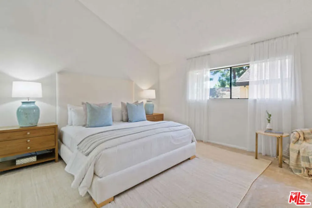 Welcome to your dream townhome in the heart of Culver City! Nestled within the highly sought-after, guard-gated Raintree community, this beautifully updated 3-bedroom, 3-bath residence offers the perfect blend of comfort, style, and resort-like living. Designed to feel like a single-family home, this spacious townhome features direct entry from an oversized 2-car attached garage and is surrounded by lush, tranquil grounds. Raintree residents enjoy 24-hour guard-gated security, scenic walking trails, a picturesque lake with streams, pool, tennis courts, and a clubhouse, all within a serene, park-like setting. Step inside to a bright and inviting living room with dramatic cathedral ceilings, a cozy gas fireplace, hardwood floors, and expansive picture windows that fill the space with natural light. Freshly painted interiors enhance the home's clean, modern feel. Just off the living room, a versatile third bedroom is ideal as a den, guest room, or home office. The open dining area flows seamlessly to a large, tiled patio through sliding glass doors, perfect for indoor-outdoor entertaining. The updated kitchen features granite countertops, ample cabinetry, and abundant natural light from a large picture window. Upstairs, the spacious primary suite offers soaring ceilings, generous closet space, and an en-suite bathroom with dual sinks and built-in storage. With access to top-rated Culver City schools and a prime location near shopping, dining, and entertainment, this exceptional home truly has it all.