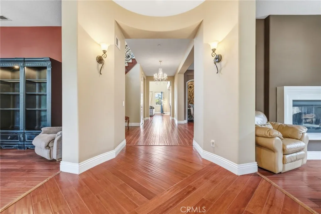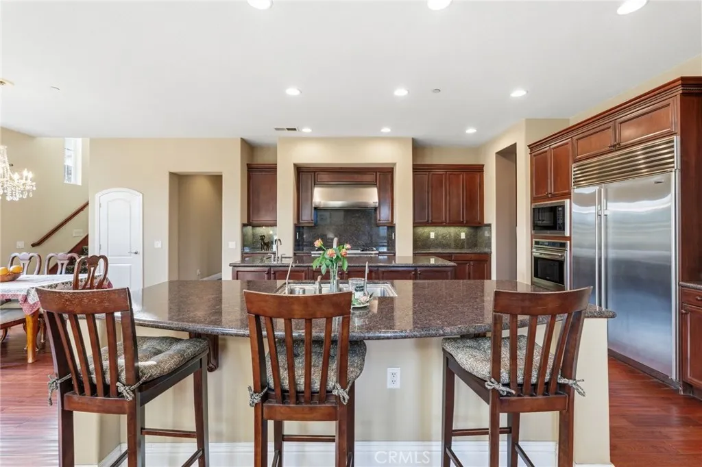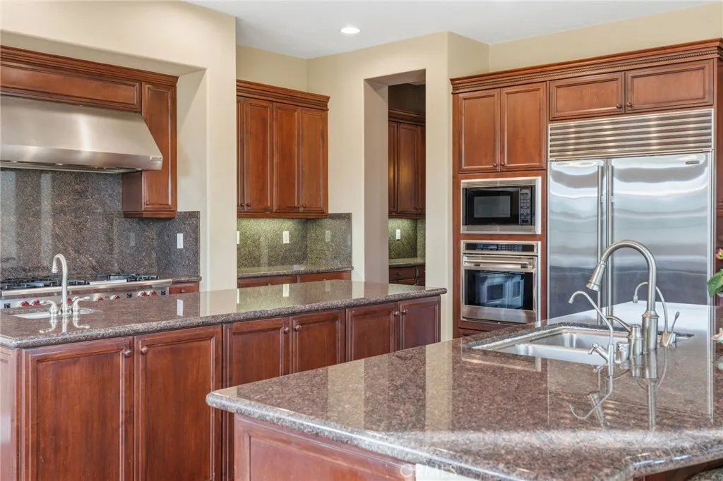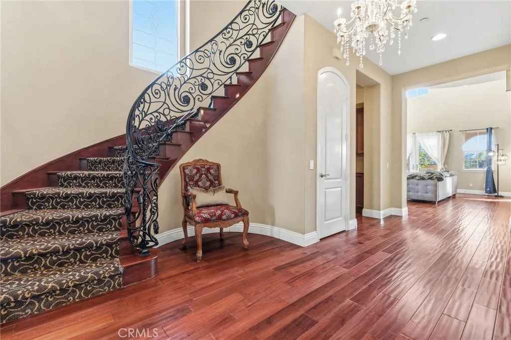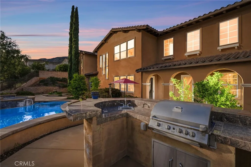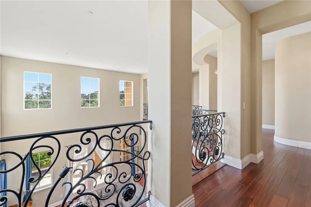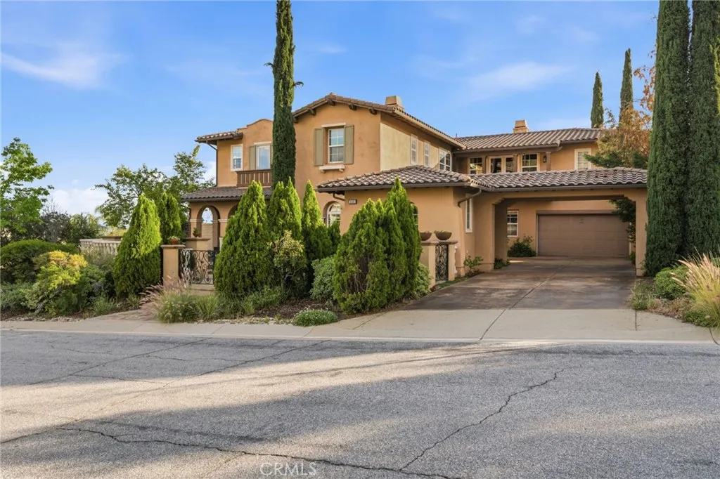 Perched above the city in the prestigious Stone Canyon Preserve of Padua Hills sits this Spanish Colonial Mediterranean inspired oasis. 4463 Cardinal Cushing offers an unparalleled blend of architectural grace and attention to detail. Nestled near the San Gabriel mountains with views that seem to stretch from now to forever Cardinal Cushing is an impressive 5,629 square feet living space on over a half acre lot. This residence commands attention with its striking hand forged iron work along the spiral staircase, hand distressed cherrywood floors and manicured grounds. Its perimeter is surrounded by cypress trees and unique fountains giving the feel of Provence in California. Upon entry, the home reveals an expansive, natural light-filled floor plan, designed for both grand-scale entertaining and intimate daily living. The professional kitchen serves as the heart of the home, boasting two grand granite kitchen islands, three Wolf ovens, a Sub-Zero refrigerator, butler's pantry, essential vegetable sink and walk in pantry. Many Michelin style dinners can be created here. The kitchen flows seamlessly into elegant living spaces characterized by high ceilings, French doors and refined finishes. The family room lends itself to both movie time with popcorn by the fire and entertaining guests. The five spacious en-suite bedrooms all offer breathtaking views. The luxurious primary suite acts as a private sanctuary, complete with a grand two-sided fireplace. Its bathroom offers a large soaking tub, large walk-in closet and vanity. The French doors from the primary open to a light filled balcony with views of the mountains. This is the perfect place to enjoy a quiet morning cup of coffee. Downstairs, tall French doors lead to the backyard that feels like a resort atmosphere, pool, spa, and a built-in BBQ are perfect for enjoying the temperate Southern California climate. A four-car garage space provides substantial storage and convenience, while the exclusive community setting ensures privacy and peace of mind. This prime cul-de-sac lot is located just a short walk or bike ride to the Claremont Hills Wilderness Park, Thompson Creek Trail, Blaisdell Ranch Preserve and the historic Padua Theatre. Also located near the Claremont Colleges, Western Christian School, Higginbotham Park, La Puerta Sports Park and convenient freeway access. Experience the pinnacle of Claremont living in a home that perfectly balances timeless European influence with contemporary comfort.
