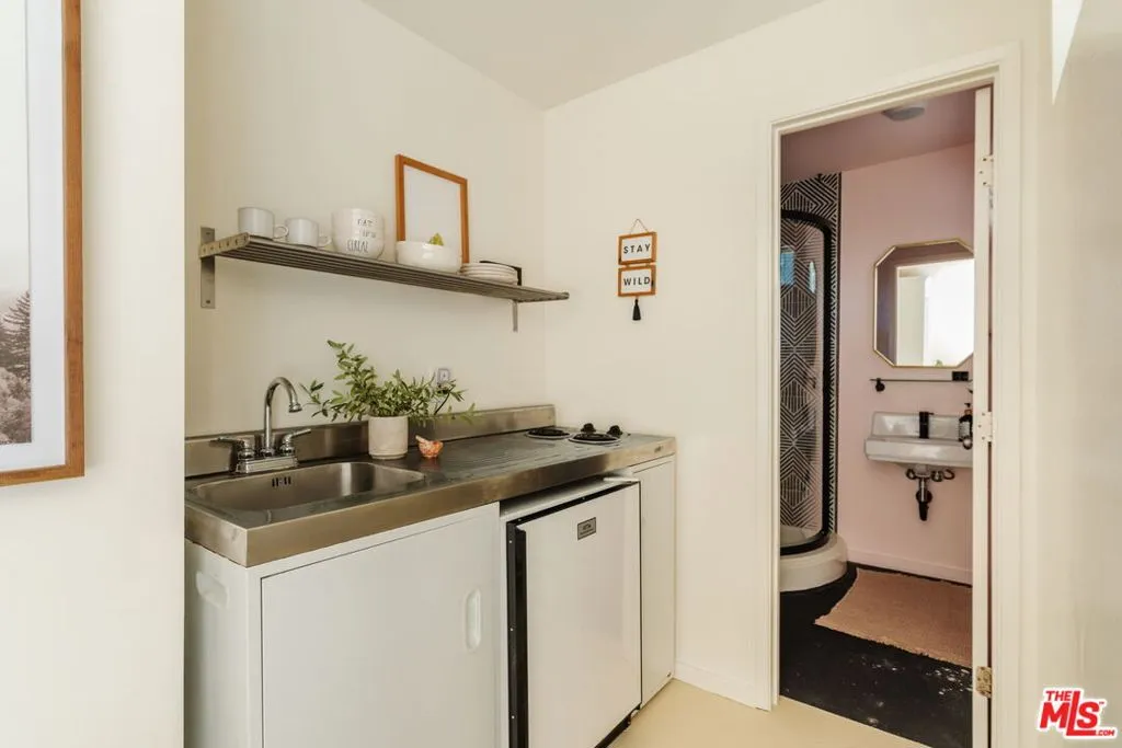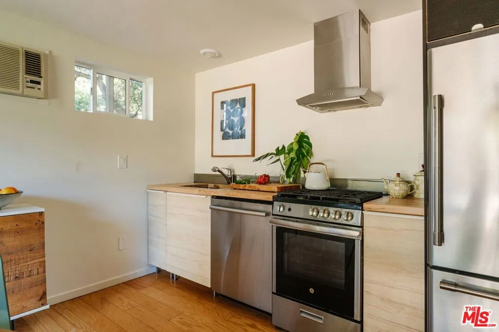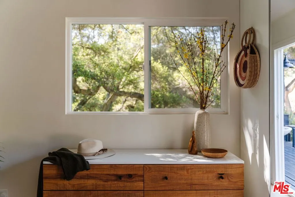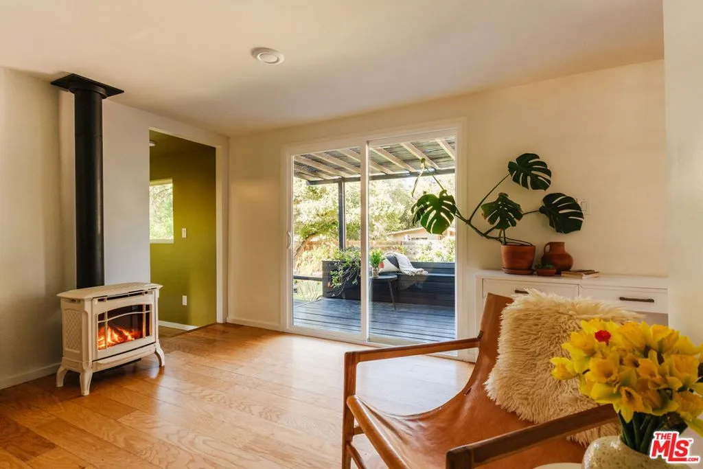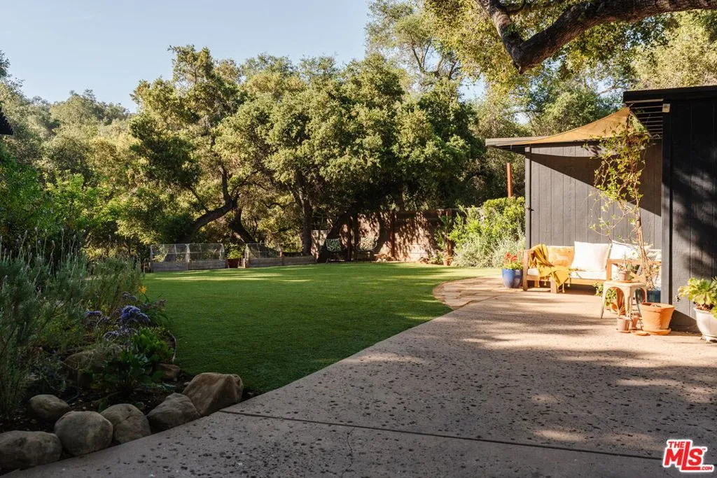 Privately situated on Fontaine Road, this beautifully reimagined property offers a blend of modern Topanga style and classic canyon charm. Bright, airy, and designed for effortless turnkey living, the property unfolds like a private mini compound on a lush, flat garden a true rarity in this mountain community. Each space is thoughtfully oriented to the surrounding landscape, creating a seamless indoor-outdoor flow.The main residence contains two bedrooms and a bathroom filled with natural light, and a generous deck that extends the living space outdoors. Just outside the primary bedroom, an open-air clawfoot tub offers a spa-like experience under the stars. A vintage-style gas fireplace in the living room adds warmth and ambiance, perfect for cozy evenings. A separate one-bedroom guest cottage enhances the property's versatility. Complete with a Murphy bed, kitchenette, and bathroom, it's an inviting space for guests, a convenient home workspace, or a charming rental opportunity.The grounds are a true highlight. A flat, central garden is encircled by a canopy of mature oaks, creating a magical setting for both entertaining and quiet retreat year-round. Beyond, the land gently slopes toward a seasonal creek, with room to play and explore.The property is also gated for privacy, with ample parking behind the gates and includes a shed with electricity and AC that doubles as a home office.Despite its tranquil setting, the home is just three minutes from the village and on the doorstep of some of Topanga's best hiking trails and all that the canyon has to offer.