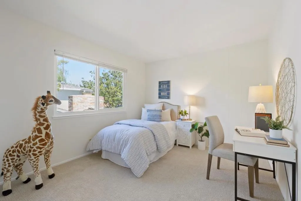 Don't let the lot size fool you, there is great outdoor space! Ideally located in Blue Lake Square, a highly desirable enclave of 24 homes, this spacious and freshly updated home feels like its part of a quiet, private community, yet just minutes from conveniences and sought-after Los Altos schools. On the market for the first time in over 50 years, this residence is an attached single-family home with just one common wall at the garage. Newly painted inside and out, it has new carpet and maple laminate floors in select rooms, which create a bright, inviting environment. Generous living areas include a spacious living room, formal dining room, and an open kitchen-family room that connect to the private wraparound yard for everyday living and entertaining. With 4 bedrooms and 2.5 baths, the layout offers separation of space with a bedroom wing and upstairs primary suite. Outdoor living is equally inviting with expansive patio space, a fireplace, retractable awnings, and fruit trees. Adding the finishing touch is access to top schools including Los Altos Oak Avenue Elementary, within walking distance, Blach Intermediate, and Mountain View High, also within walking distance. Plus, a community pool and convenient access to Highway 85 puts all of Silicon Valley within easy reach.