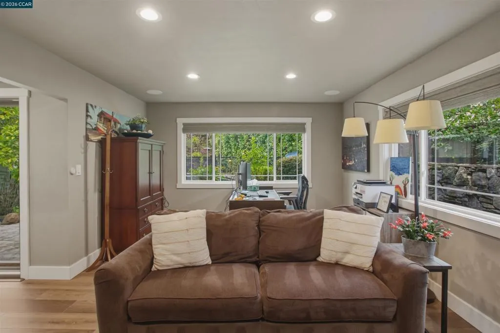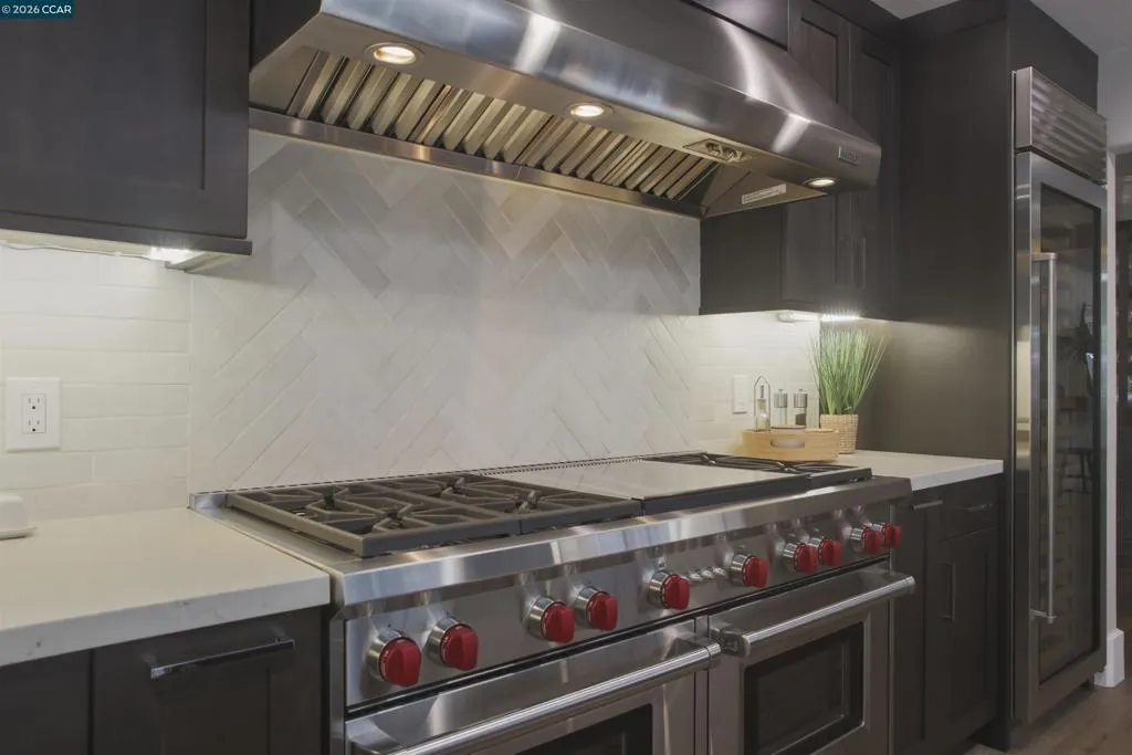 Tucked in the coveted Lakewood neighborhood, this breathtaking single story Craftsman offers estate style living (Main house 4 bed 4.5 bath 3,678 sq ft plus ADU 2 bed 1 bath 842 sq ft.) Two oversized living rooms feature soaring ceilings, custom hardwood floors, built ins, picture windows, and gas fireplaces in each living room, plus a drop down movie screen. Automated window coverings throughout the property. The chef’s quartz kitchen includes top tier Wolf appliances, a 60 inch range with double griddle and built in coffee maker, Sub Zero Pro refrigerator, and full size wine fridge, flowing into the formal dining room. The primary suite offers a sitting area, dual walk in closets, fireplace, and spa inspired bath with soaking tub, oversized shower, and dual vanities, plus a French door to the backyard. Three additional bedrooms are en suite with generous closets and natural light. The designer ADU includes a fireplace, gourmet kitchen, and sleek bath, laundry. Resort style grounds feature owned solar, outdoor kitchen, waterfall, multiple seating areas, fire pit, and saltwater pool with Cabo deck. Two car garage, additional parking, walkable to downtown Walnut Creek and Open Space, trails, parks, BART, freeways and WC schools. Eligible for possible Lake membership.