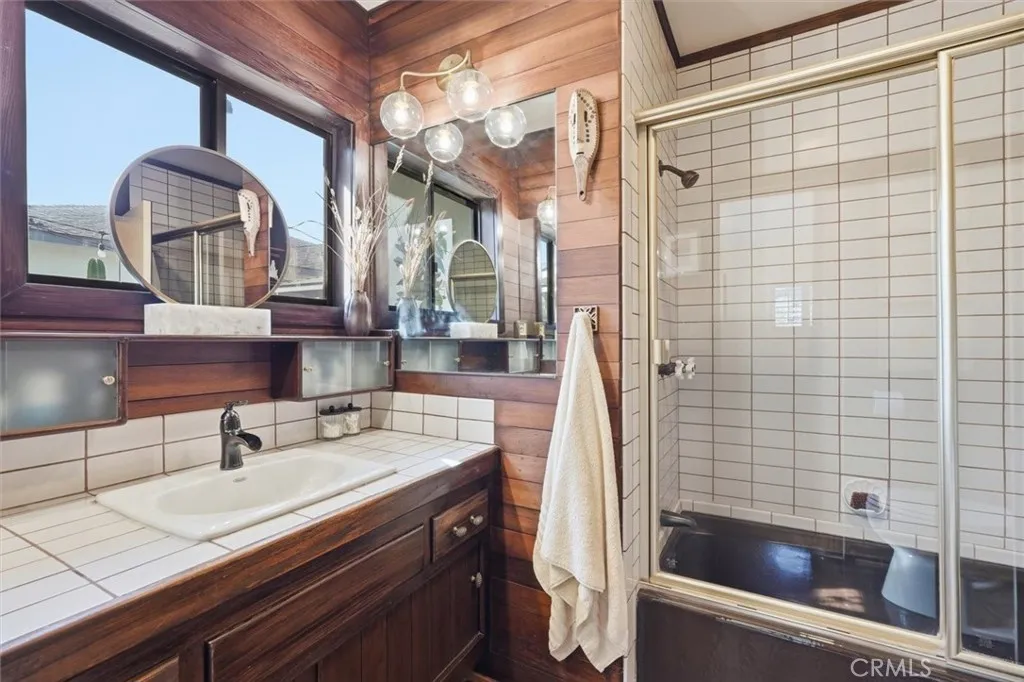 Tucked into a special pocket of Redondo Beach on a quiet cul-de-sac, this is a home with warmth, character and a rare sense of serenity. Surrounded by native landscaping and anchored by a beautiful mature olive tree, the home makes an immediate impression with its rich wood siding, wood garage door and inviting approach. A cozy wood front patio creates the perfect place for morning coffee, an evening glass of wine or simply enjoying the peaceful setting before you even step inside. Beyond the front door, the home reveals a truly special feel—welcoming and filled with details that give it a sense of permanence and soul. The living room is both comfortable and charming, centered around a wall lined with built-in bookshelves and warmed by original hardwood floors that add timeless character. A striking three-sided fireplace connects the living room, dining area and kitchen, creating a wonderful sense of flow and making each space feel intimate yet connected. The dining area is spacious and open, ideal for everyday meals or entertaining, and connects seamlessly to the kitchen, where crisp white cabinetry and a stainless-steel stove and oven bring together classic style and function. An interior window opens from the kitchen to the sunroom, adding personality and an easy connection between the spaces. Accessed from the main living area, the sunroom is one of the home’s most distinctive features, with Saltillo tile floors inlaid with hand-painted accents, curved windows and a lush green privacy hedge that surrounds the space in natural beauty. Built-in cabinetry and a sink make it an ideal flex space for relaxing, working, or creating. Two secondary bedrooms feature hardwood floors and share a bathroom with wood walls and custom tile. Privately situated apart from the secondary bedrooms, the en-suite primary offers a cozy retreat with soft carpet and sliding doors that open to a large private deck—an ideal extension of the room and a place to unwind. Completing the home is a new roof, an oversized attached garage with exceptional versatility, featuring a built-in desk area with cabinetry, multiple windows and glass ceiling panels that bring in natural light. Air conditioning, abundant exterior storage and the home’s many lovingly considered details only add to its appeal. Far from a typical South Bay property, this is a home with heart, individuality and a truly special atmosphere that you feel the moment you walk in.