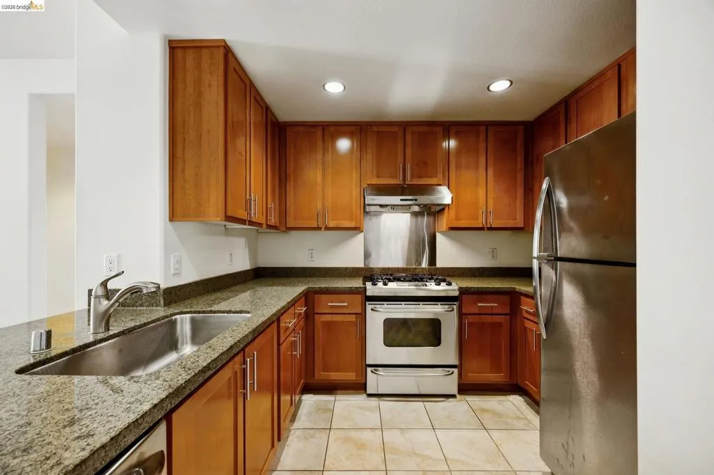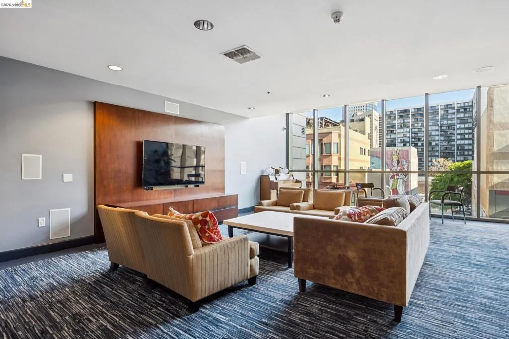 This 1-bedroom and 1-bath unit has an open floor plan, facing the serene courtyard. It is carpeted throughout and is fitted with air conditioning. The kitchen features granite countertops, a gas stovetop range, and all stainless steel appliances. The bedroom boasts a walk-in closet for extra storage. The full bathroom offers a granite countertop and vanity, a shower over the tub, and tile flooring. The washer and dryer are conveniently tucked away in the hallway closet next to the bathroom. 8 Orchids is a gated complex with an entry lobby with a soaring ceiling, media center, party room, tranquil courtyard, and rooftop garden that offers views of metropolitan Oakland and the Bay. WalkScore® 99, only blocks away from Old Town Oakland and Jack London Square restaurants, farmers’ markets, shops, and a movie theater, as well as BART, AMTRAK, public transit, and freeways. Only about 15 minutes from San Francisco.