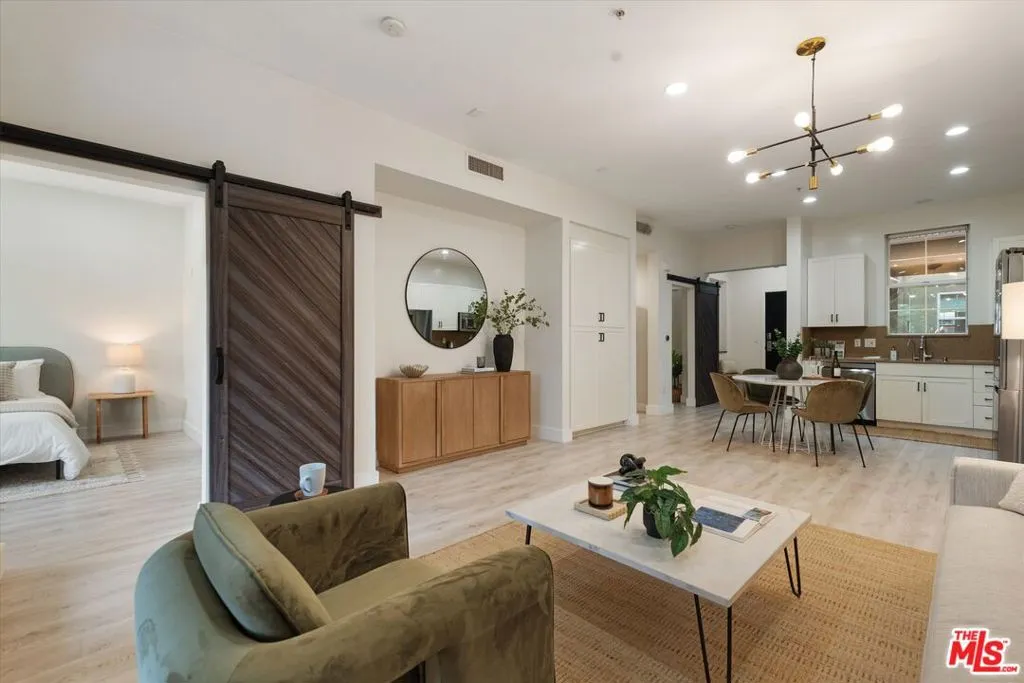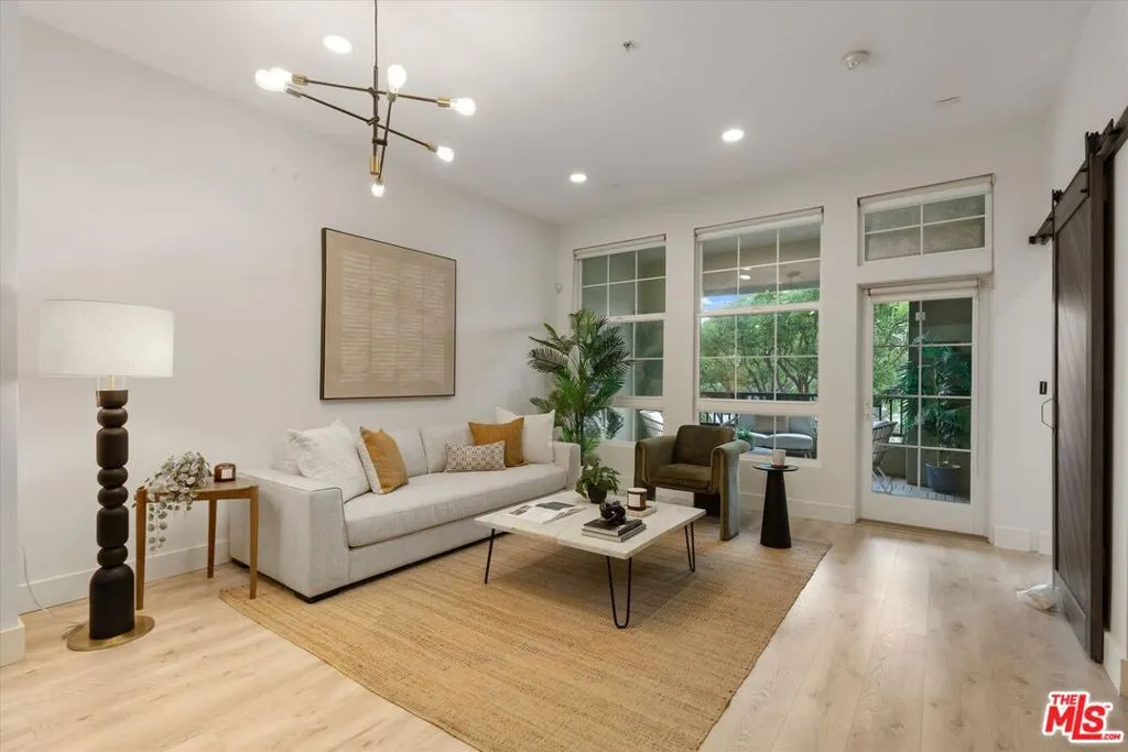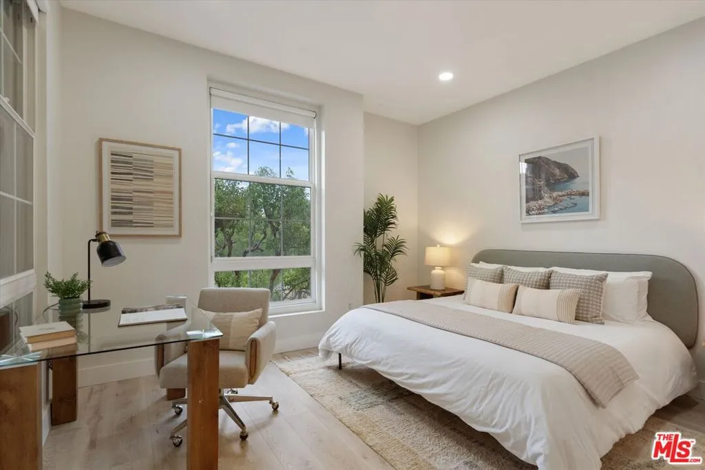 Experience the best of Playa Vista in this stylish 2-bedroom, 2-bath condo in the highly sought-after Lofts building. Offering contemporary LA living with private outdoor space, this residence blends modern comfort with striking industrial character. Soaring ceilings, abundant natural light, and an open-concept layout create an airy, inviting atmosphere throughout. The modern kitchen opens seamlessly to the living and dining areas and is equipped with upgraded LG appliances, including the refrigerator, dishwasher, and in-unit washer and dryer. A wall of windows fills the home with natural light, enhancing the bright and inviting living space. Just beyond, the private patio overlooks the park and offers the perfect setting for relaxing or dining al fresco under string lights. Both bathrooms feature shower-tub combinations, offering functionality and comfort. The flexible second bedroom is ideal for a home office or guest space, while the spacious primary suite includes a walk-in closet with built-ins and a spa-like feel. Set within a secure courtyard, the home is just moments from scenic walking paths, neighborhood cafes, restaurants, and everyday conveniences. Residents enjoy access to the Centerpointe Club, and Resort, featuring a resort-style pool and fitness center. Located near Playa Vista's shops, dining, parks, elementary school, Whole Foods, movie theater, and more, this home offers elevated, effortless living in one of Los Angeles' most desirable communities.