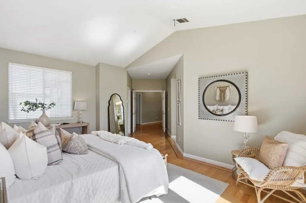 Set on a sun-filled corner lot, this beautifully maintained 2,590± SF home blends classic scale with thoughtful updates and effortless everyday living. A dramatic entry and living room with vaulted ceilings create an immediate sense of openness, while expansive windows draw in natural light throughout. The floor plan is both functional and inviting, featuring a formal dining room for gatherings, a well-appointed kitchen with granite countertops, generous pantry, breakfast nook, and updated appliances, and a separate great room with fireplace and built-in storage designed for relaxed living. Upstairs, the expansive primary suite offers a quiet retreat with a private balcony and an updated bath with refined finishes. Hardwood floors extend throughout, complemented by soaring ceilings that enhance the homes cohesive, airy feel. Over time, the property has been thoughtfully improved with updates to key systems, windows, flooring, and outdoor spaces creating a home that feels both timeless and exceptionally well cared for. There are 2 HOA's: Gossamer Cove and Redwood Shores Owners Association. Gossamer Cove is $215 monthly Redwood Shores Owners Association is $80 annual