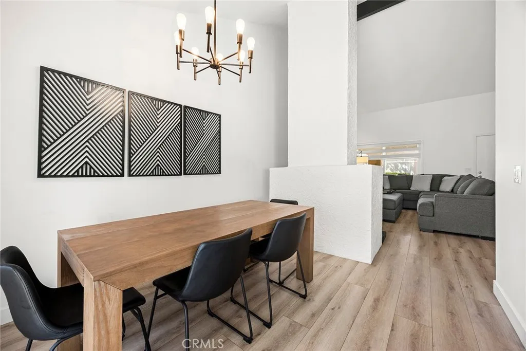 Located at the end of a cul-de-sac in the highly sought-after Rancho Dominguez Townhomes community in Yorba Linda, this fully move-in ready 3-bedroom, 2-bathroom home offers the perfect blend of comfort and convenience. Step inside to a spacious main living area with soaring ceilings that create an open, airy feel. The home features wide-plank luxury vinyl flooring throughout the living, dining, and kitchen areas, along with a beautifully updated kitchen complete with quartz countertops and stainless steel appliances. Both bathrooms have been tastefully renovated with modern finishes. This single-level home offers the rare benefit of no interior steps and no unit above. Enjoy a private, enclosed back patio—perfect for relaxing or entertaining—with direct access to the two-car garage, which includes a 220V outlet ready for EV charging. Ideally situated on the northeast corner of the community, the home is just a short walk to amenities including the pool, tennis courts, and playground. Surrounded by lush greenbelt space, the community offers a peaceful, park-like setting. Located within the highly regarded Yorba Linda school district, the home is assigned to Travis Ranch K–8 and Esperanza High School. A wonderful opportunity for anyone from growing families to those looking to downsize without compromise.