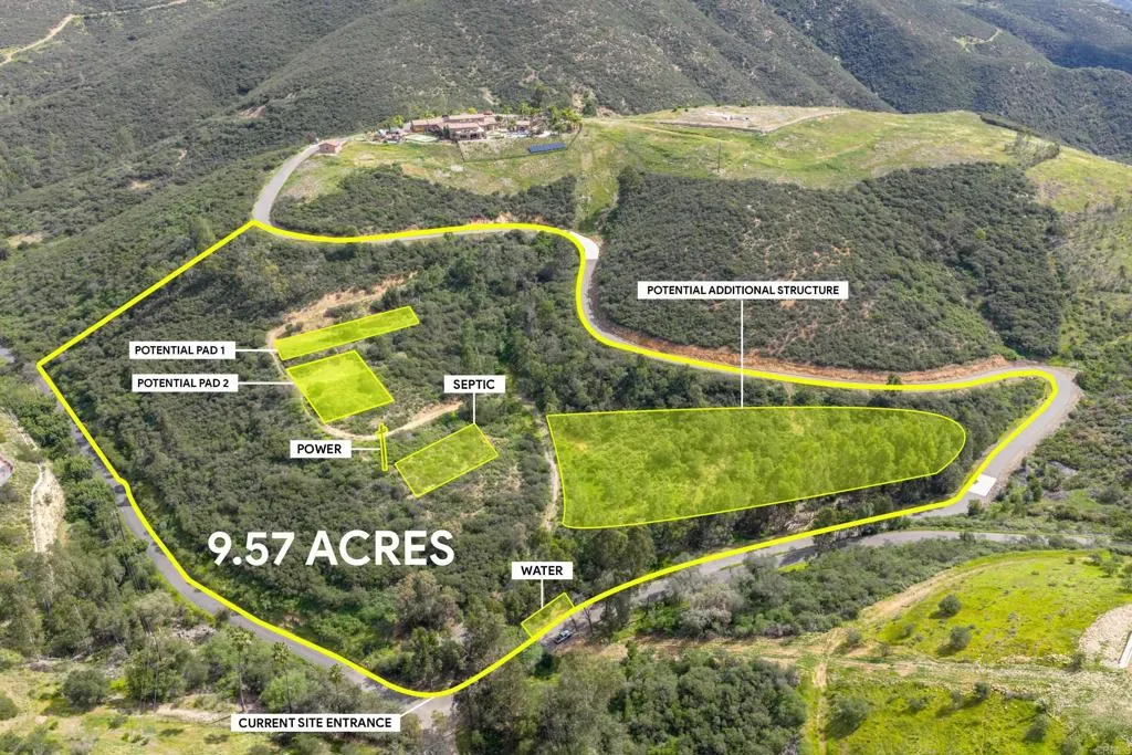 Rare opportunity to own 9.57 acres of prime residential land in the highly desirable San Elijo Hills area of San Marcos. This expansive parcel offers a unique blend of privacy, natural beauty, and development potential—ideal for a custom estate, family compound, or possible subdivision (buyer to verify). The property features gentle sloping topography with panoramic views of surrounding hills, mountains, and open space, creating an exceptional setting for a dream home. With two graded pads already in place, along with water and power stubbed to the site and nearby sewer access, much of the groundwork has been started for future development. Zoned A-1 (Agricultural/Residential) with a minimum lot size of approximately one acre (subject to topography and city requirements), this parcel offers flexibility for a variety of residential uses. Enjoy a peaceful rural atmosphere while remaining just minutes from Cal State San Marcos, shopping, dining, and everyday conveniences, accessible via nearby private access routes. Located within the sought-after Double Peak School District and Mission Hills High School, this property combines location, scale, and potential—making it a standout investment or end-user opportunity. No HOA. Seller financing available for qualified buyers with acceptable terms.